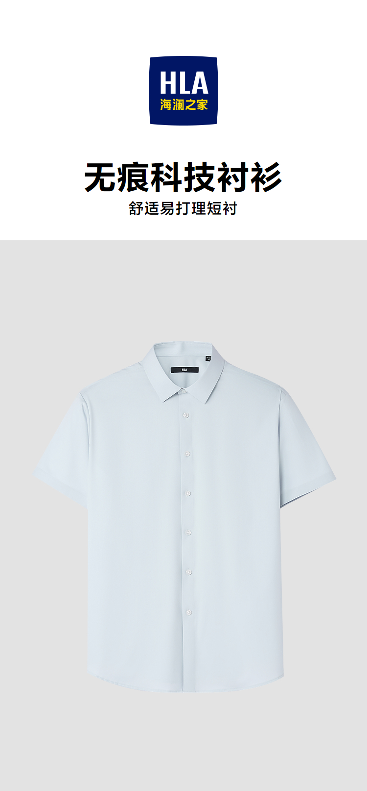 HLA海澜之家无痕科技易打理短袖休闲衬衫26春夏新含莫代尔短衬男HNECD2F033A