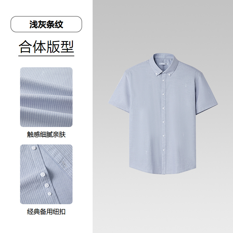 HLA海澜之家轻商务时尚系列短袖衬衫26春夏新牛津纺纯棉衬衣男HNECW2F007A