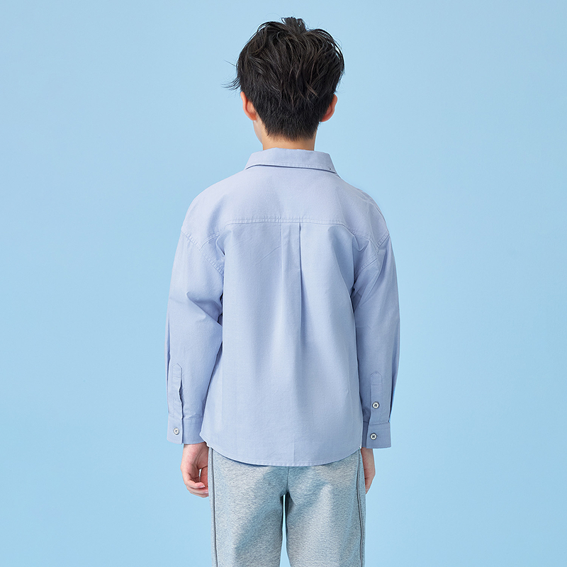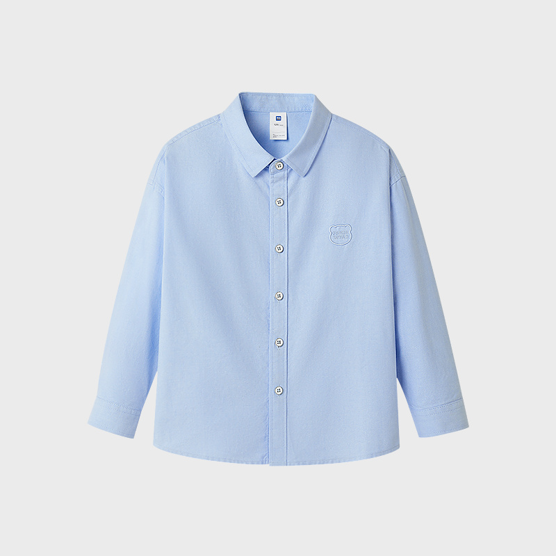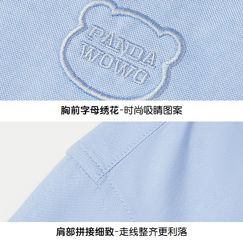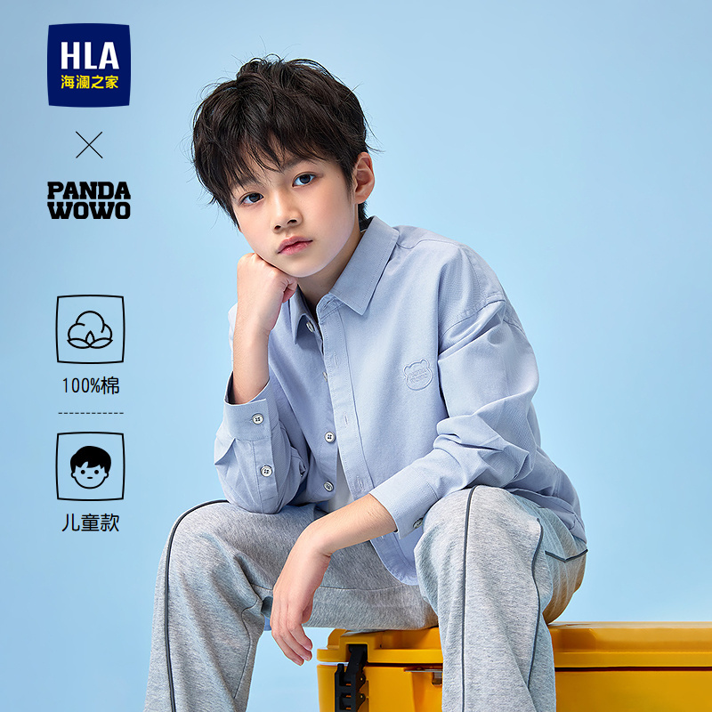 HLA海澜之家panda wowo熊猫长袖衬衫25秋新绣花纯棉上衣男女童装HNEFW3J006A