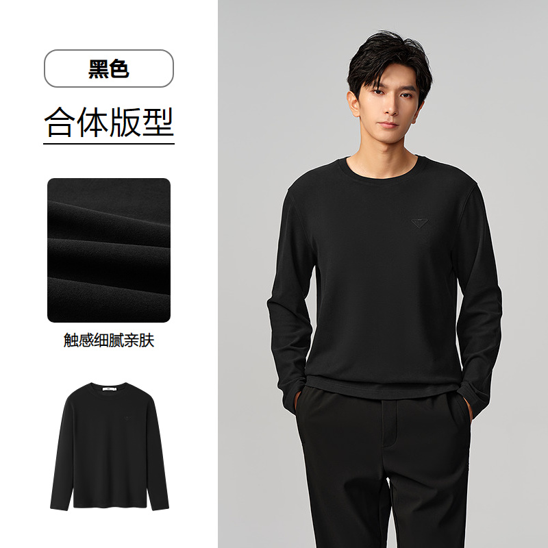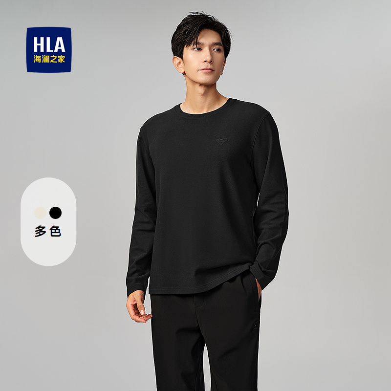 HLA海澜之家立体标长袖T恤2025秋季新款圆领舒适时尚保暖上衣男HNTAD3J042A