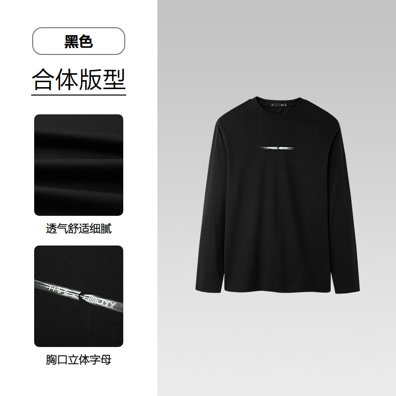 HLA海澜之家三体联名系列长袖T恤26春夏新立体字母圆领上衣男HNTAW1F002A