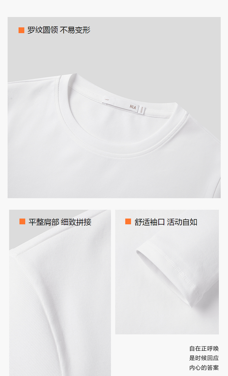 HLA海澜之家基础款长袖T恤26春夏新款圆领弹力通勤纯色打底女装HNTAW1F300A