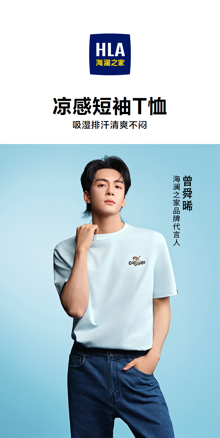 HLA海澜之家曾舜晞同款短袖T恤26春夏新马年凉感吸湿排汗短袖男HNTBJ2F037A