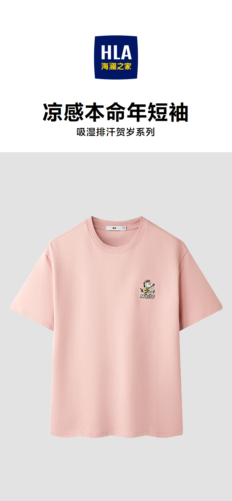 HLA海澜之家马年贺岁系列T恤26春夏新凉感吸排快乐马本命年男HNTBJ2F208A