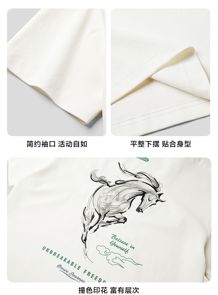 HLA海澜之家马年贺岁短袖T恤26春夏新凉感吸湿排汗印花短袖男HNTBJ2F238A