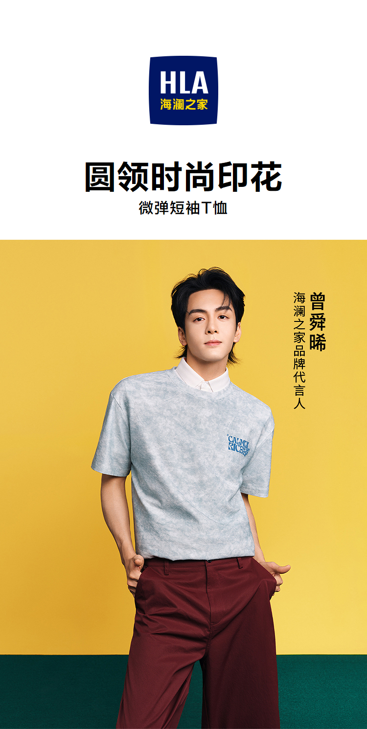 HLA海澜之家曾舜晞同款马年系列短袖T恤26春夏新圆领印花上衣男HNTBJ2F274A