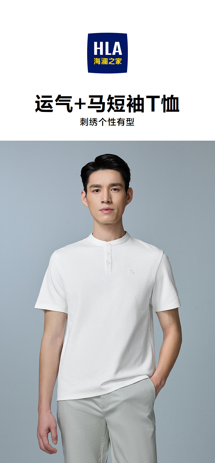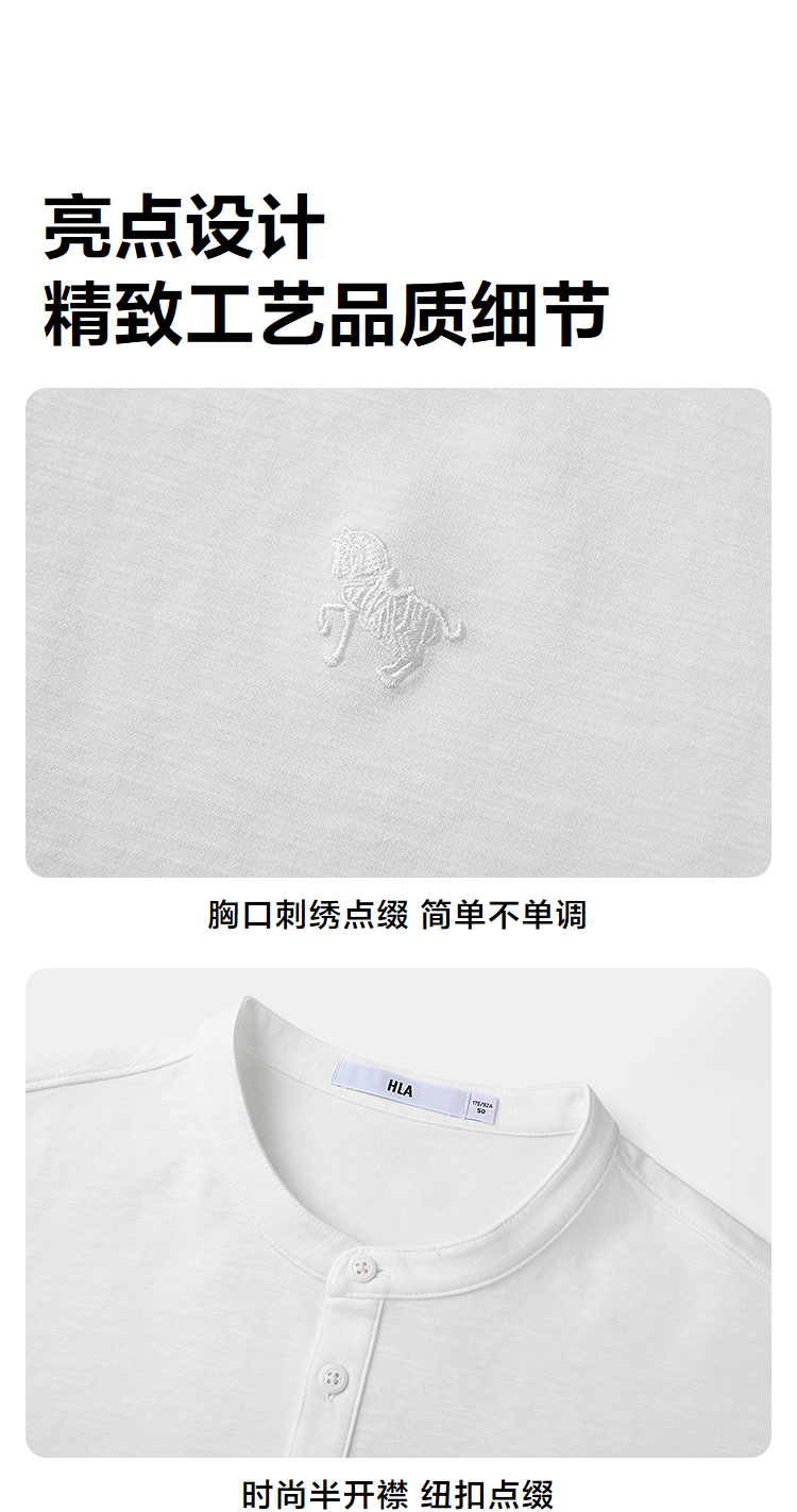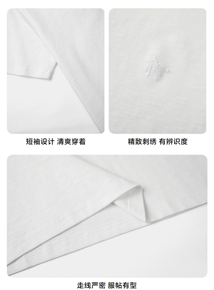 HLA海澜之家马年贺岁系列短袖T恤2026春夏新款刺绣含亚麻上衣男HNTBJ2F286A
