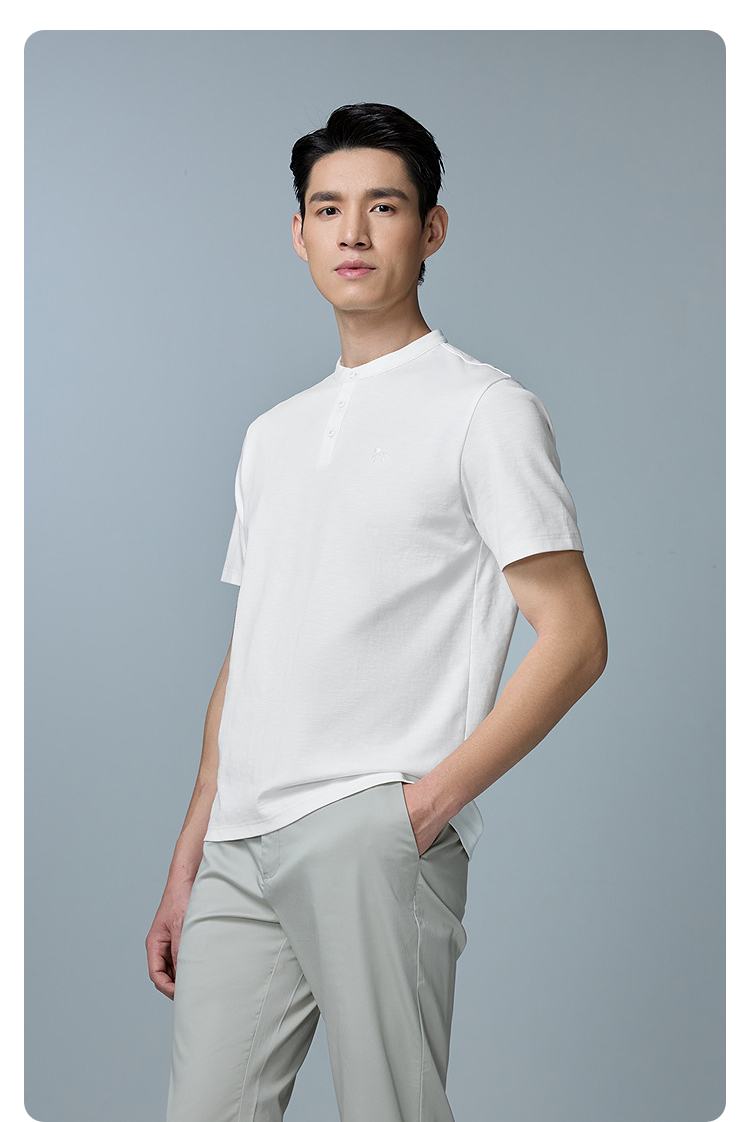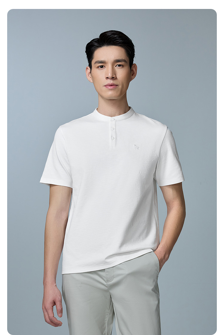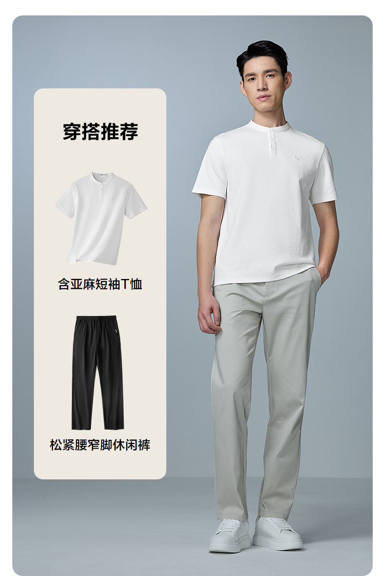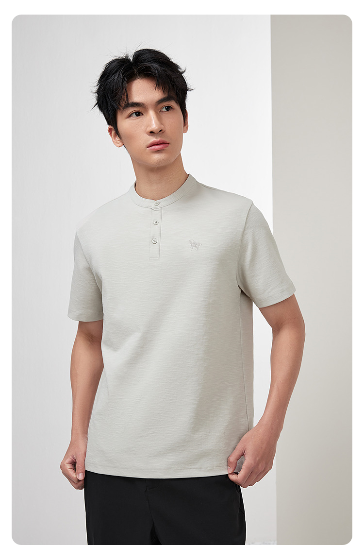 HLA海澜之家马年贺岁系列短袖T恤2026春夏新款刺绣含亚麻上衣男HNTBJ2F286A