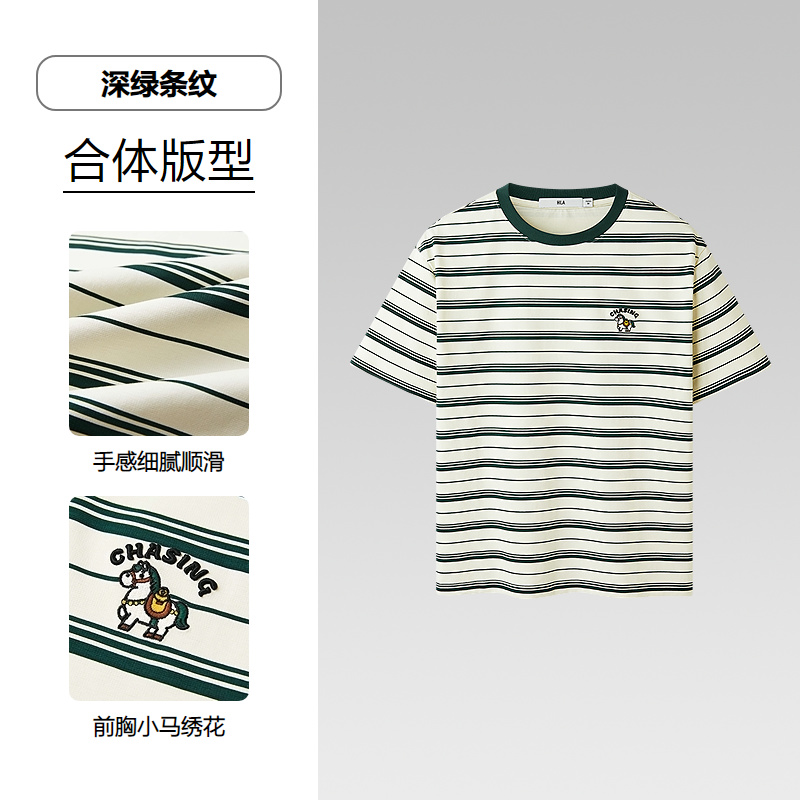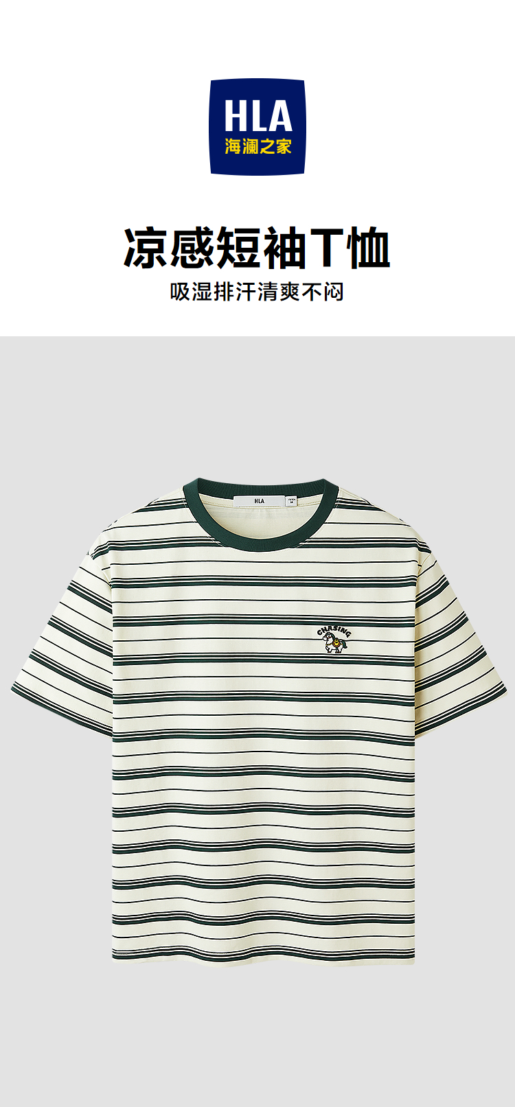 HLA海澜之家马年财气马短袖T恤26春夏新凉感吸湿排汗绣花短袖男HNTBJ2F324A