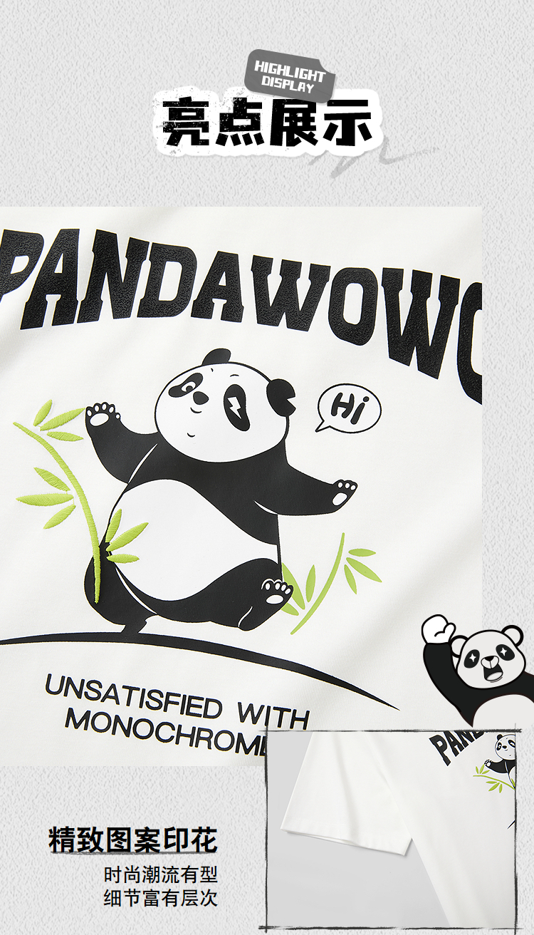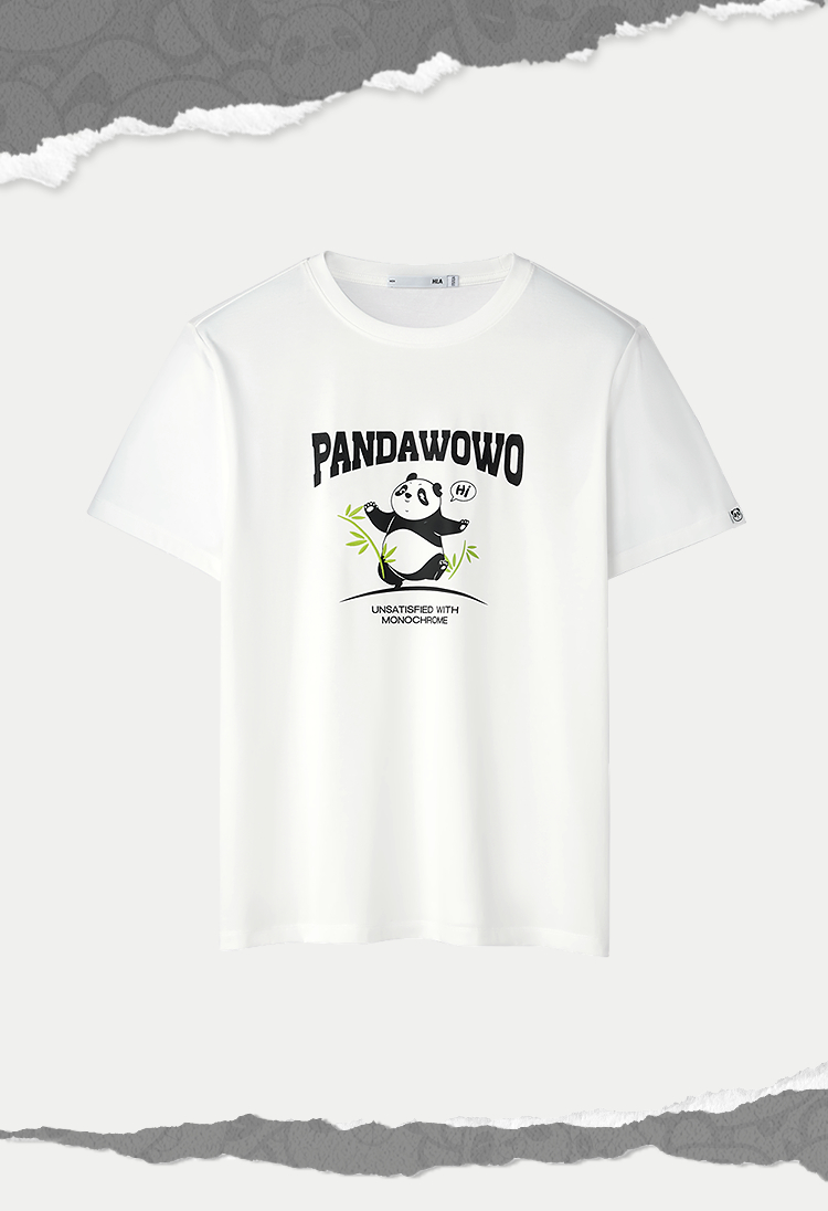 HLA海澜之家panda wowo熊猫系列短袖T恤26春夏新印花绣凉感短t男HNTBW2F012A
