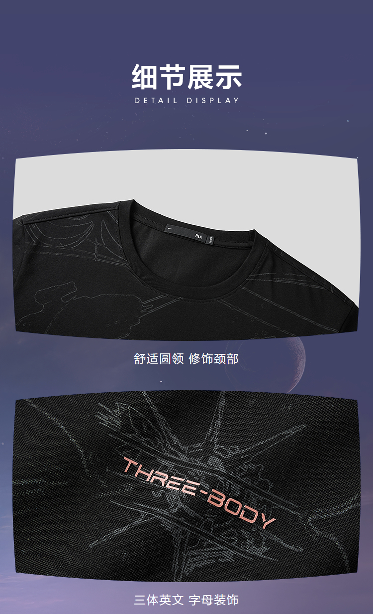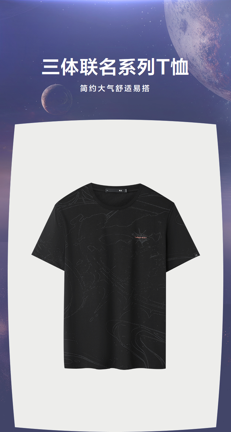 HLA海澜之家三体联名系列短袖T恤2026春秋新款印花圆领短T男HNTBW2F094A