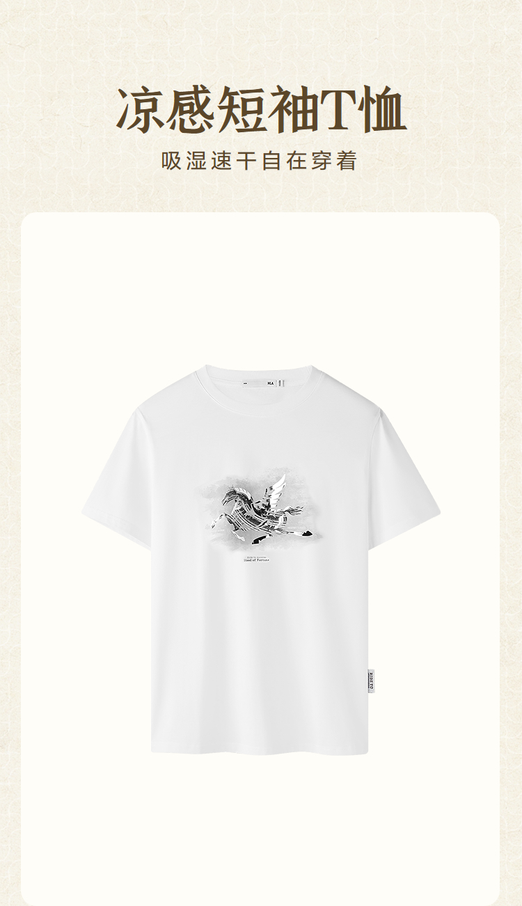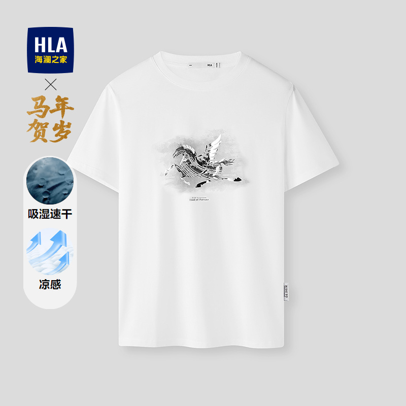 HLA海澜之家马年贺岁系列短袖T恤26春夏新款凉感吸湿速干上衣男HNTBW2F125A