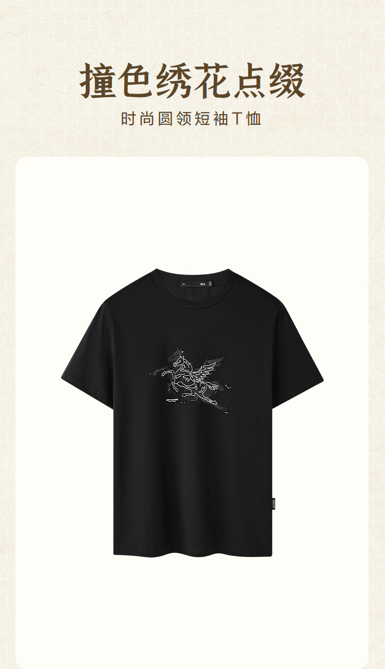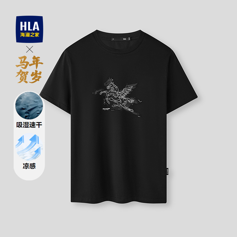 HLA海澜之家马年贺岁系列短T26春夏新飞马绣花凉感速干上衣男HNTBW2F126A