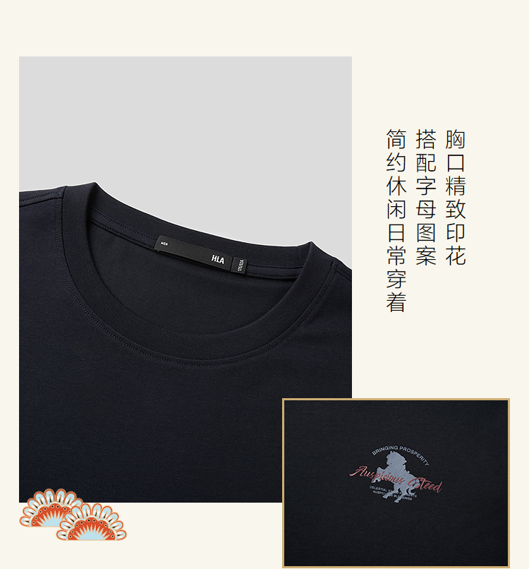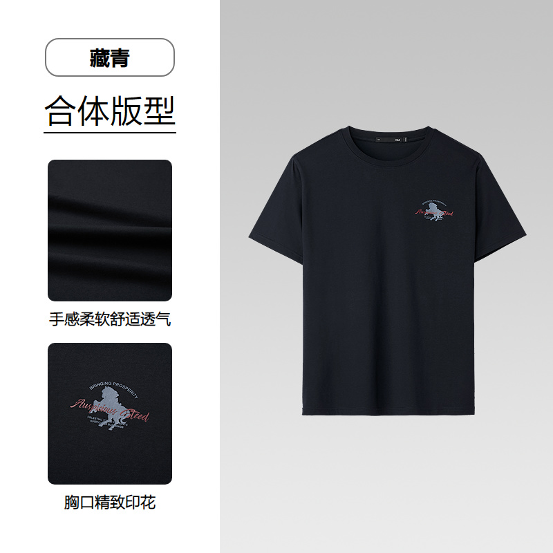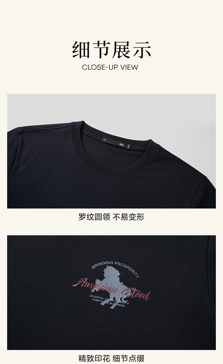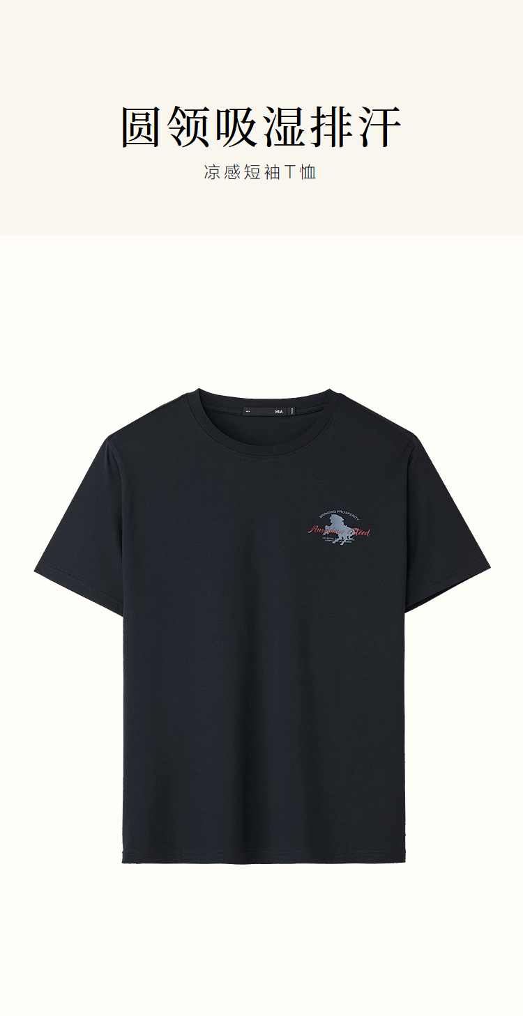 HLA海澜之家马年贺岁系列短袖T恤26春夏新圆领凉感吸湿排汗短t男HNTBW2F275A
