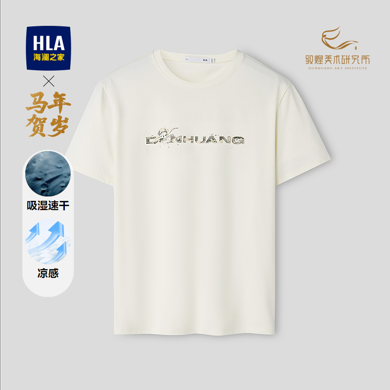 HLA海澜之家马年贺岁系列短袖T恤26春夏新圆领凉感吸湿速干短t男HNTBW2F370A