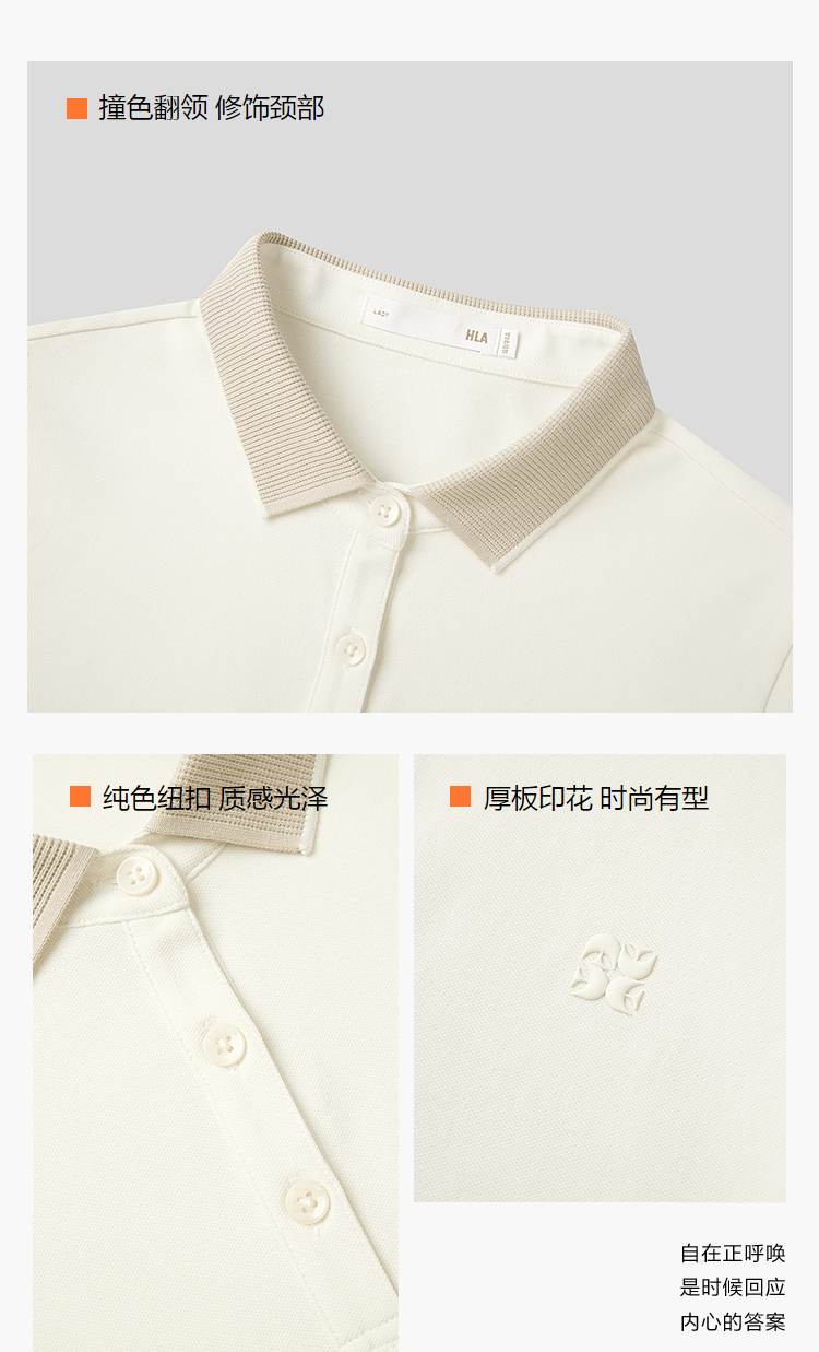 HLA海澜之家撞色翻领短袖POLO衫26春夏新厚板印花弹柔珠地女装HNTFW2F506A