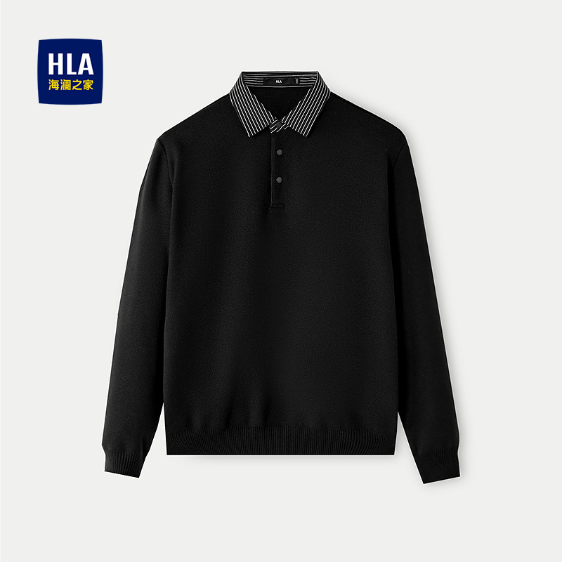 HLA海澜之家休闲长袖针织衫2025秋季新款POLO领套头修身毛衣男HNTHD3J002A