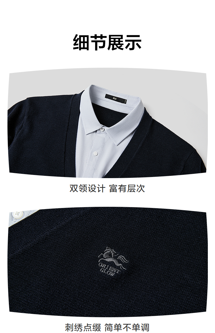 HLA海澜之家【董事长推荐】双领针织衫2025秋季新款假两件男HNTHD3J013A