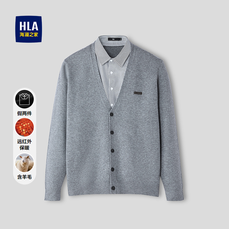 HLA海澜之家保暖双领针织衫25秋季新款开襟款远红外含羊毛毛衣男HNTHD3J020A