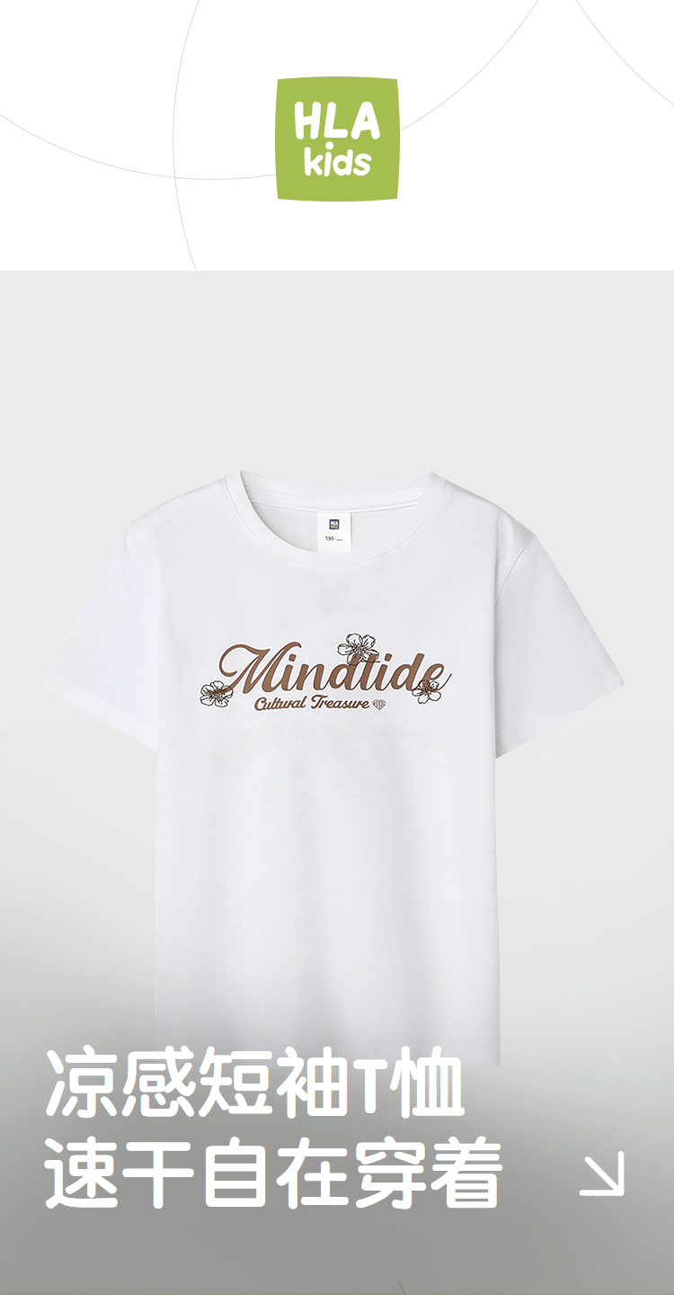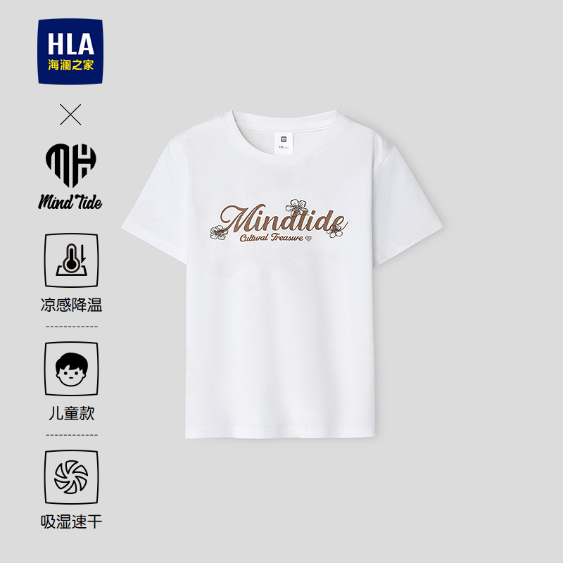 HLA海澜之家亦心即为系列短袖T恤26春夏新凉感吸湿速干男女童装HNTKW2F007A