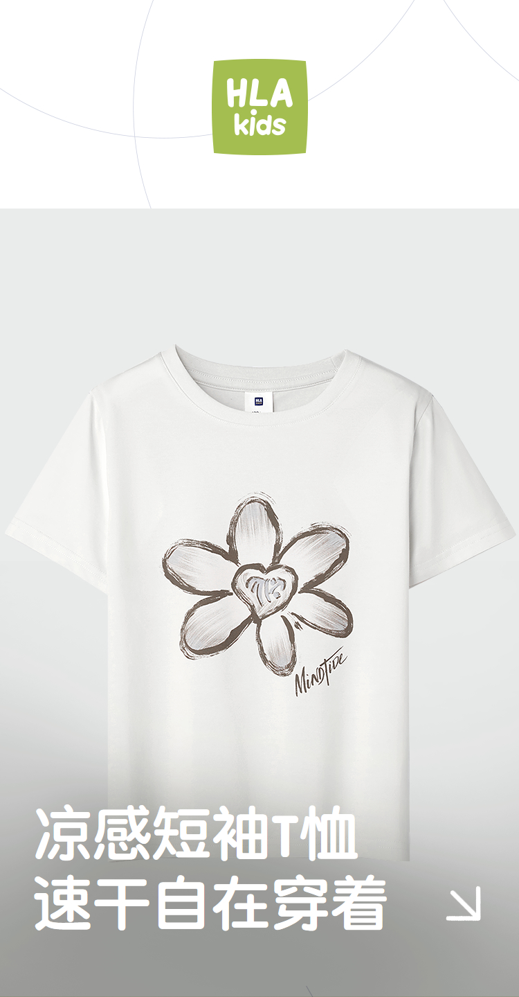 HLA海澜之家亦心即为系列短T26春夏新凉感吸湿速干上衣女童童装HNTKW2F008A