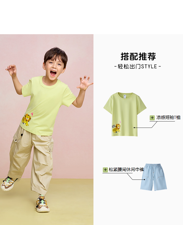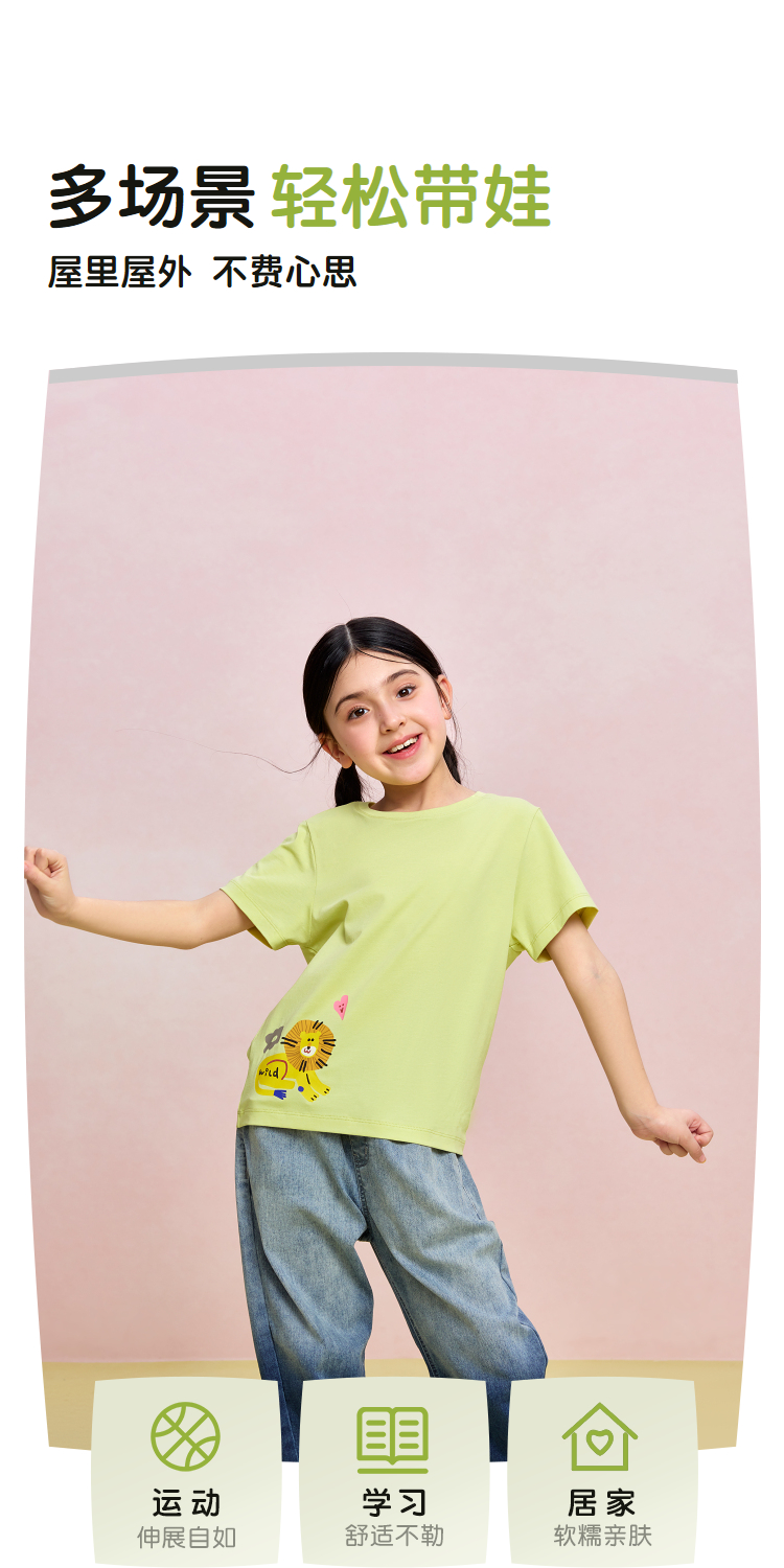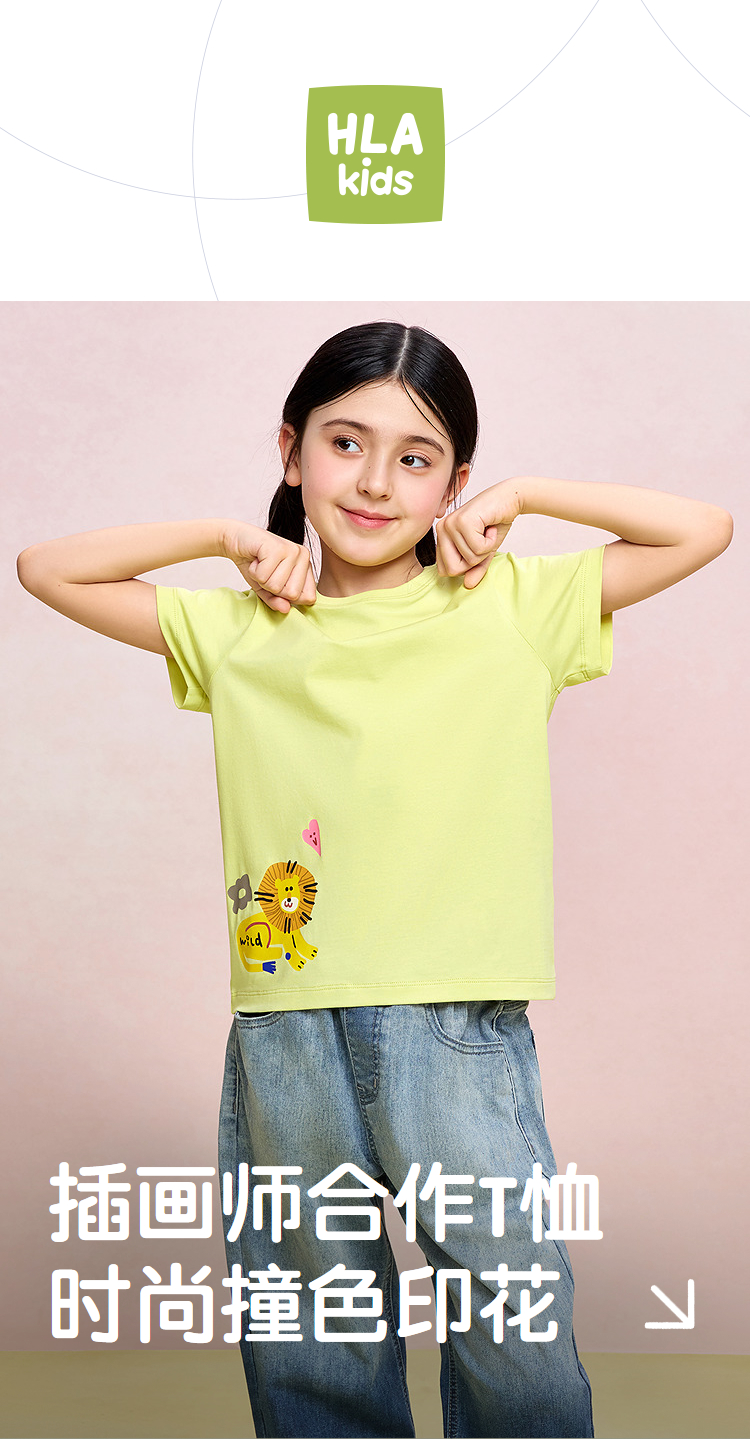 HLA海澜之家园里真奇妙短袖T恤26春夏新凉感吸湿排汗短袖男女童HNTKW2F012A