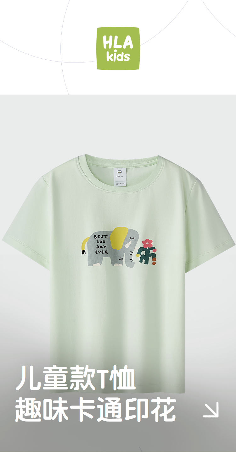 HLA海澜之家园里真奇妙系列短袖T恤26春夏新圆领上衣男女童装HNTKW2F013A