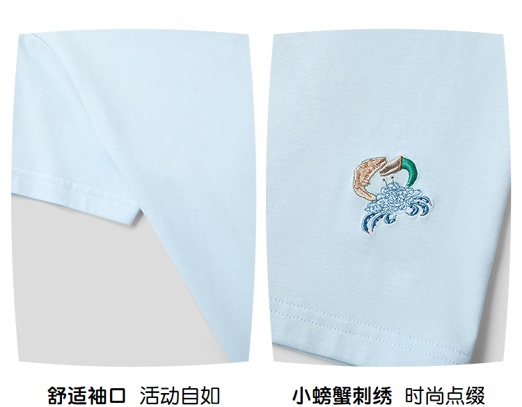 HLA海澜之家园里真奇妙系列短袖T恤26春夏新小螃蟹上衣男女童HNTKW2F019A