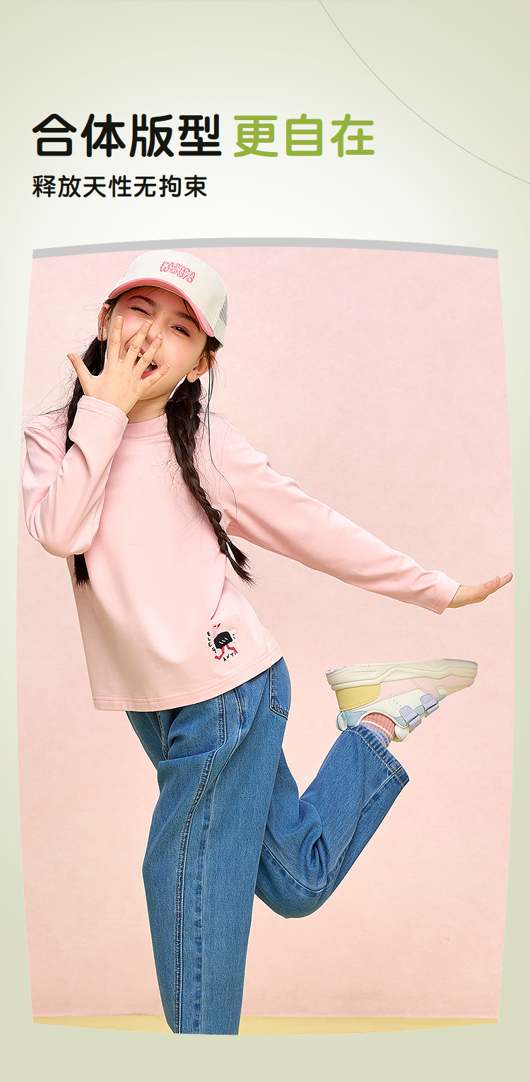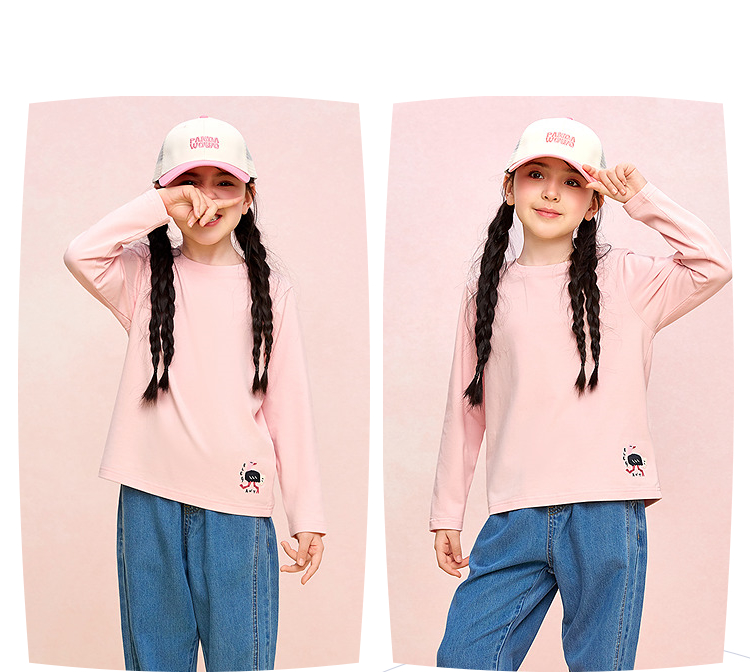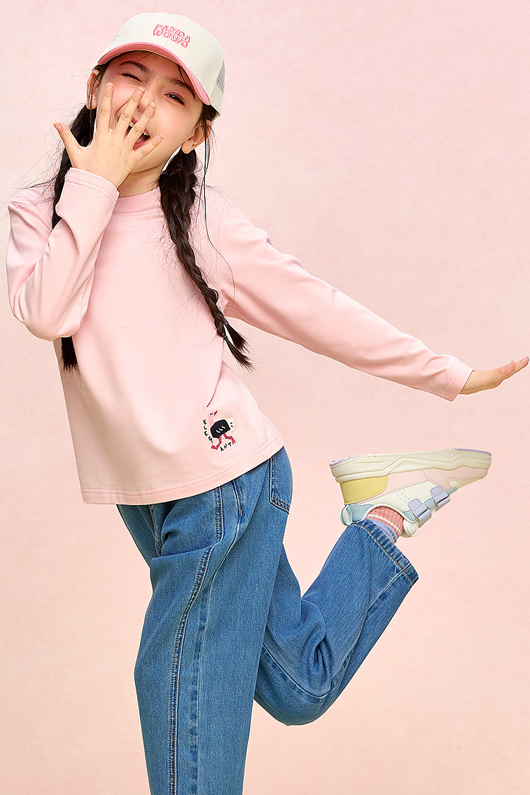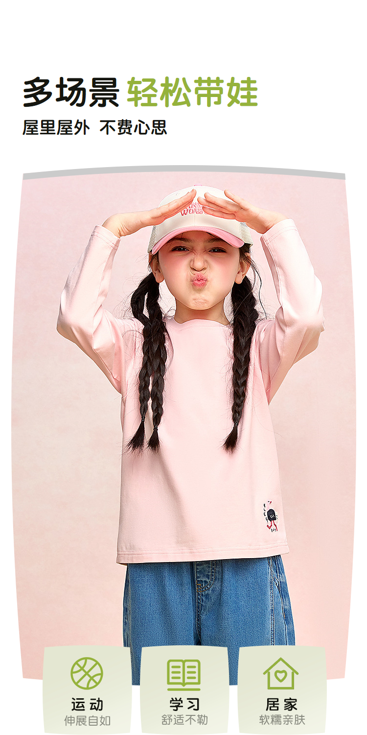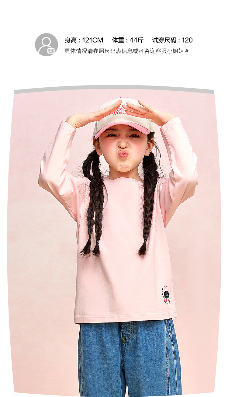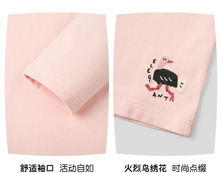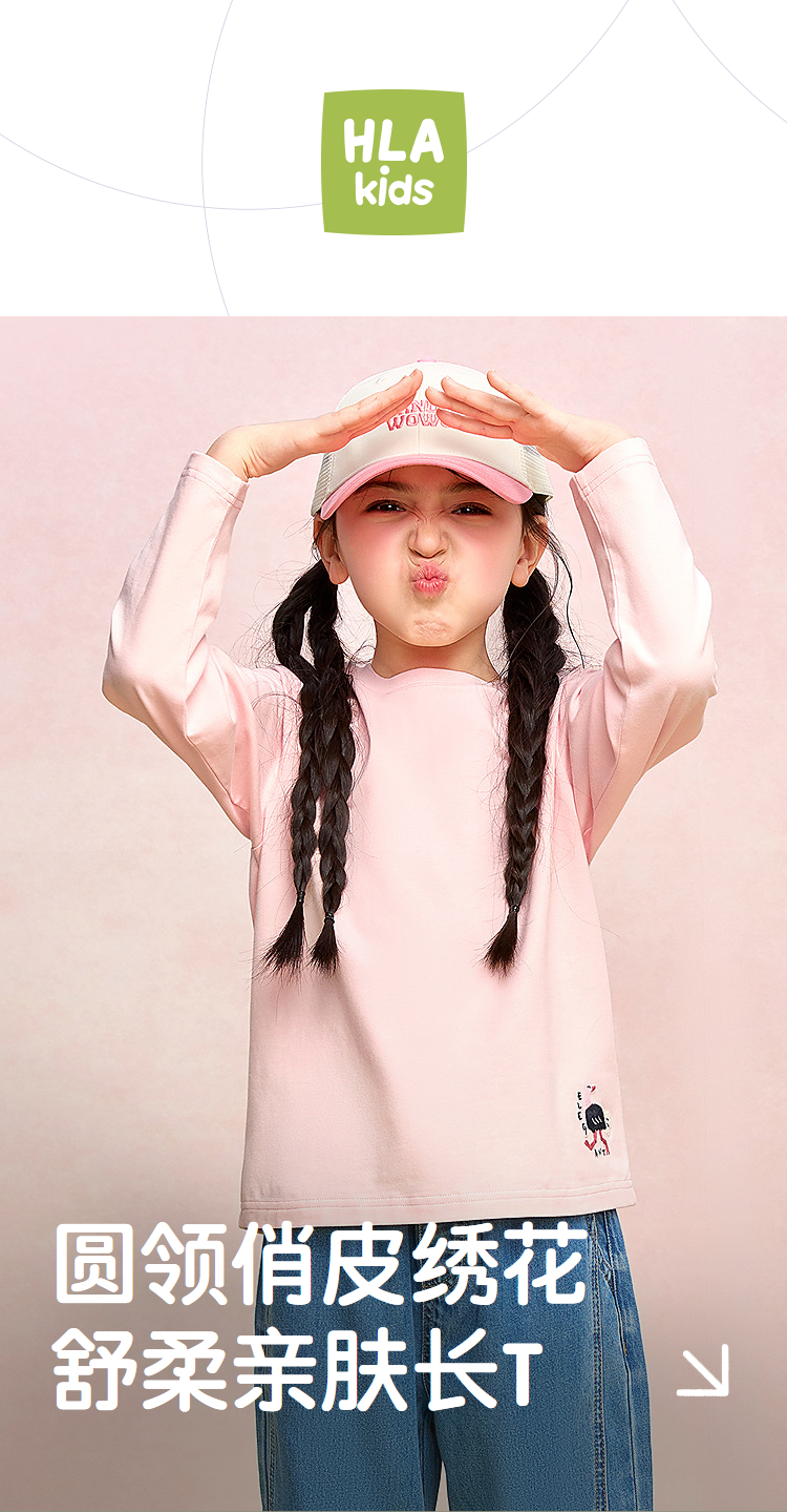 HLA海澜之家园里真奇妙系列长袖T恤26春夏新圆领绣花上衣女童HNTLW1F009A