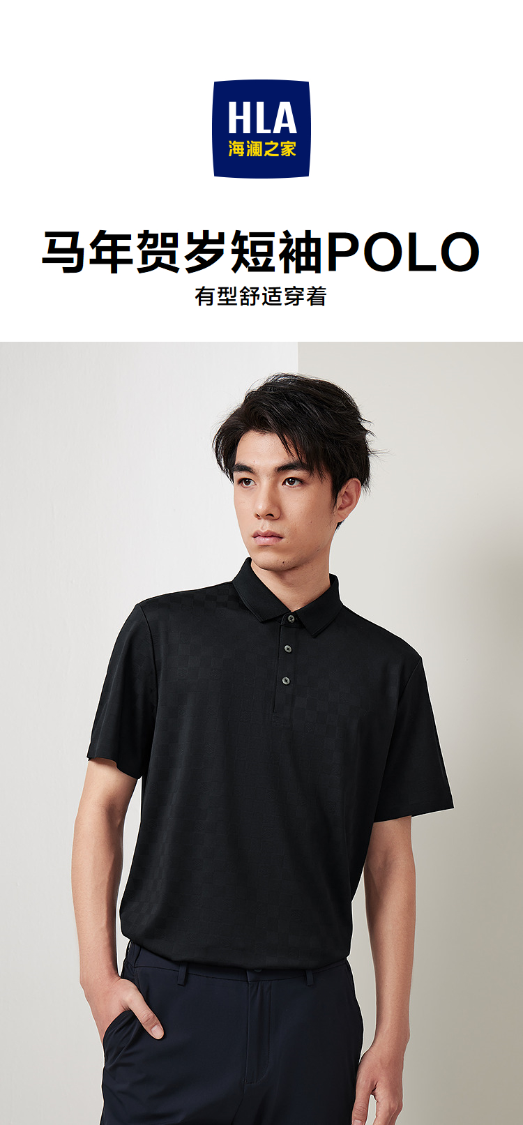 HLA海澜之家马年贺岁系列短袖POLO衫2026春夏新丝光工艺上衣男HNTND2F021A