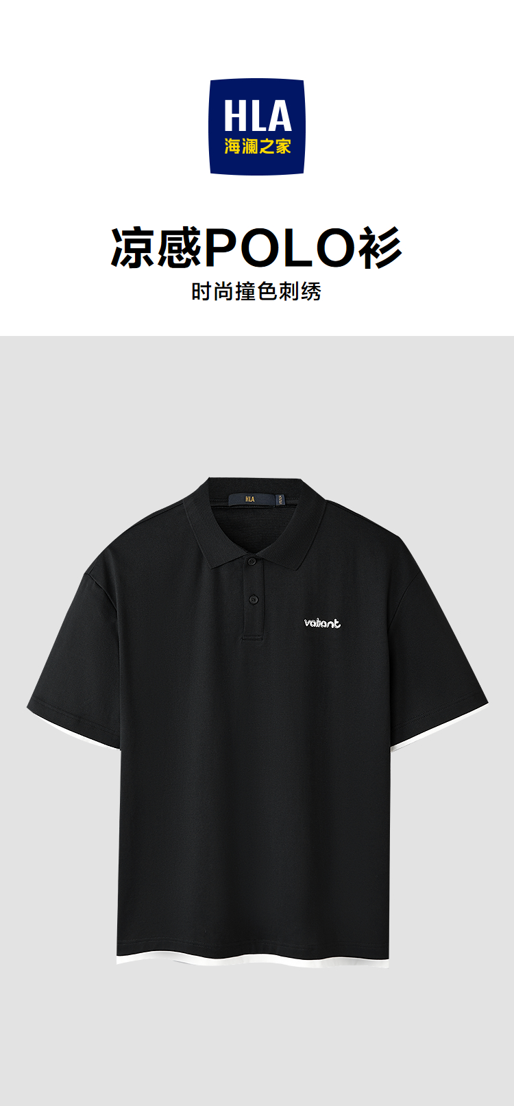 HLA海澜之家凉感透气POLO衫2026春夏新撞色刺绣弹力翻领短袖男HNTPD2F054A