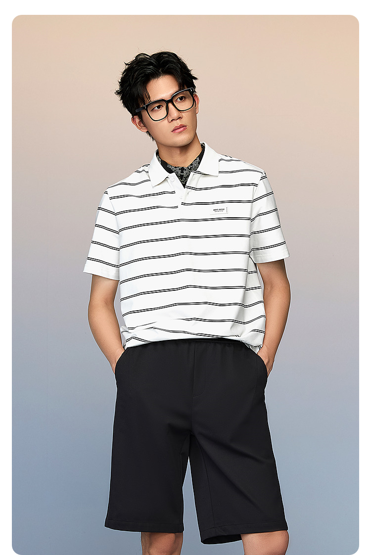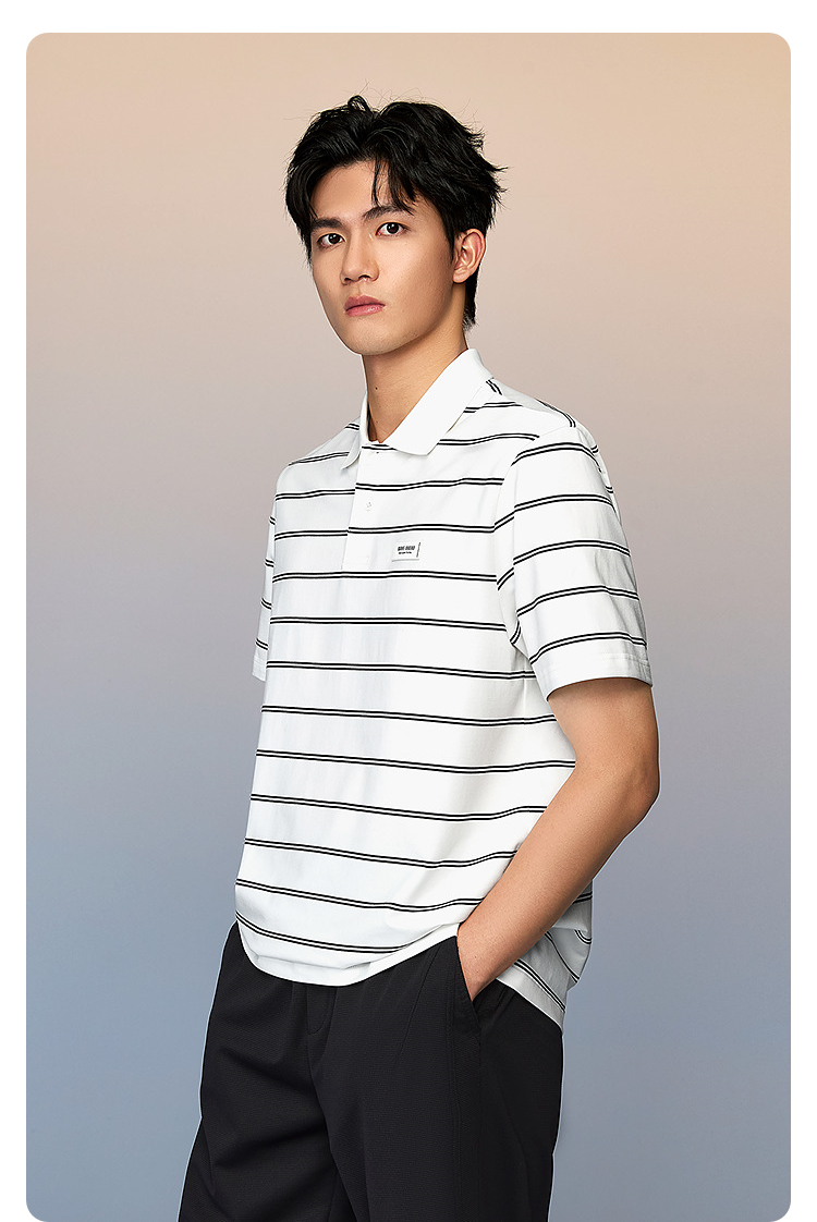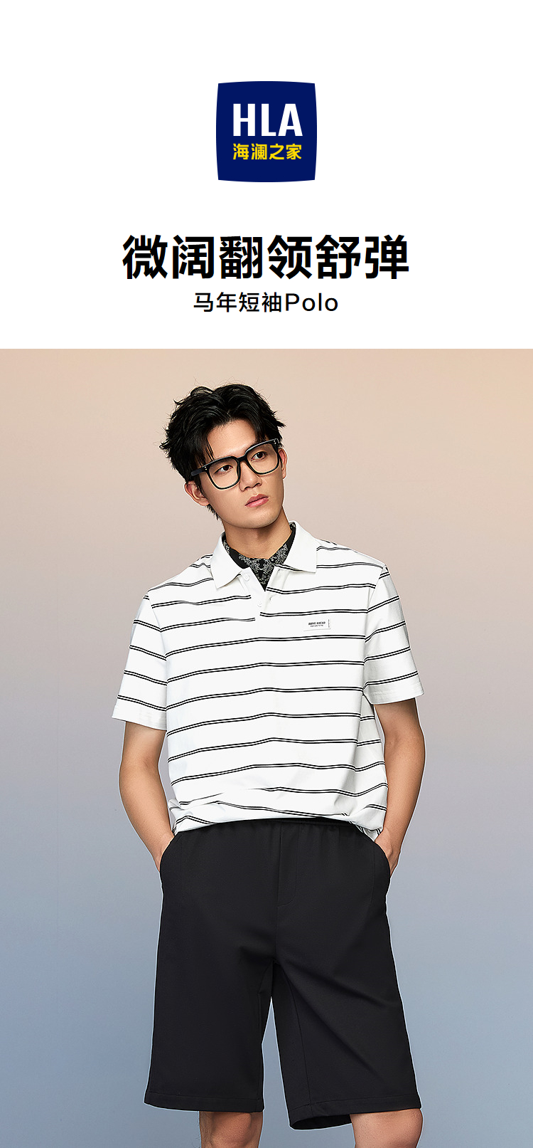 HLA海澜之家马年系列短袖POLO衫2026春夏新款微阔色织条纹上衣男HNTPD2F105A