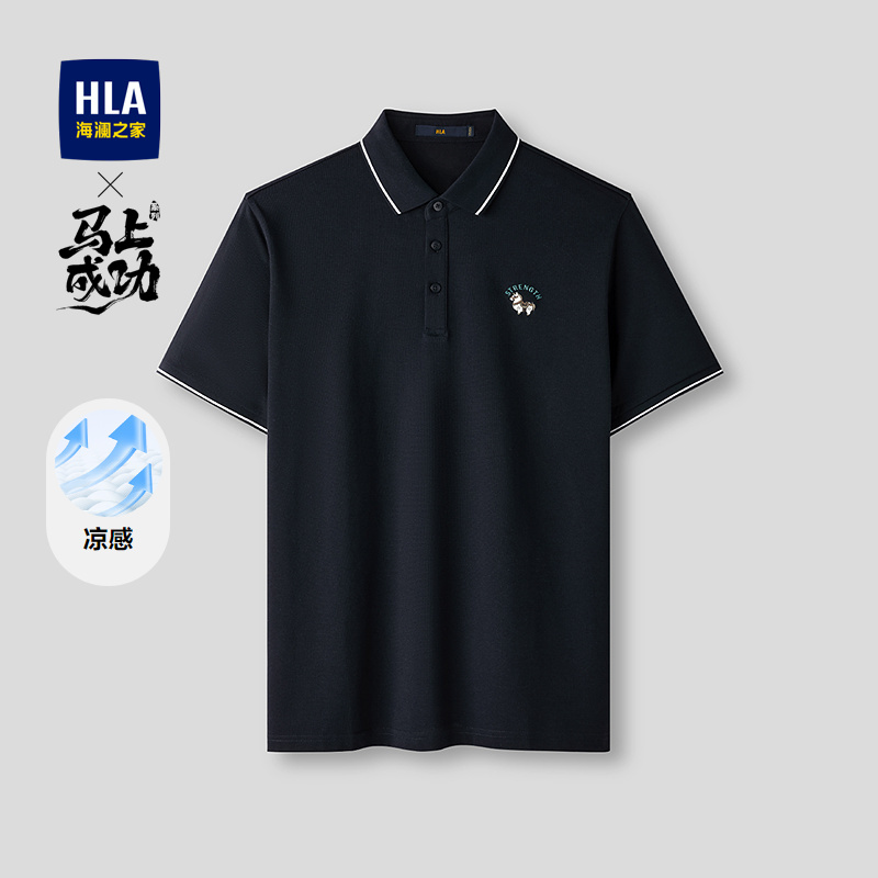 HLA海澜之家马年系列短袖POLO衫2026春夏新款凉感财气马上衣男HNTPD2F156A