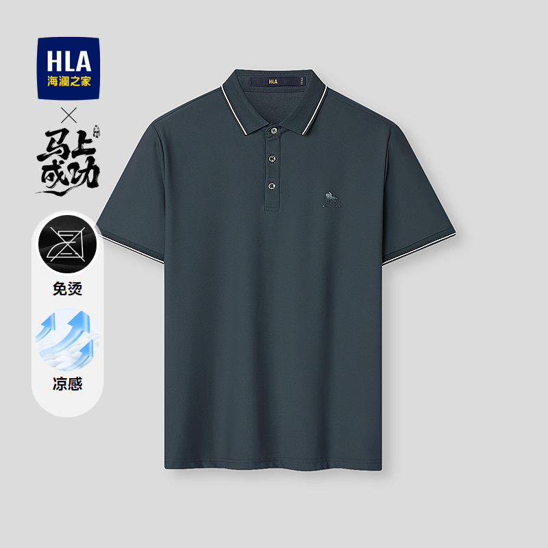 HLA海澜之家马年运气马短袖POLO衫26春夏新款凉感免烫舒适短袖男HNTPD2F161A
