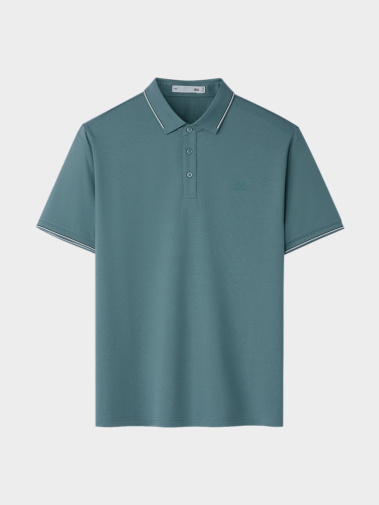 HLA海澜之家轻商务经典系列短袖POLO26春夏新含桑蚕丝翻领上衣男HNTPW2F095A