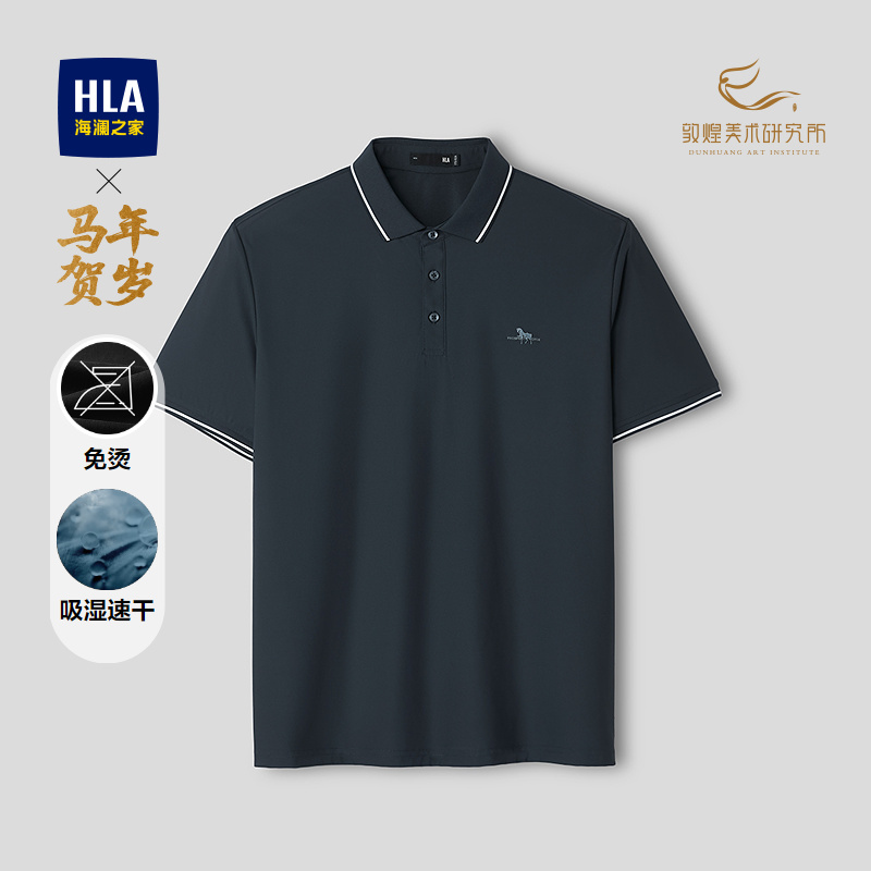 HLA海澜之家马年贺岁系列短袖POLO衫26春夏新免烫吸湿速干上衣男HNTPW2F137A