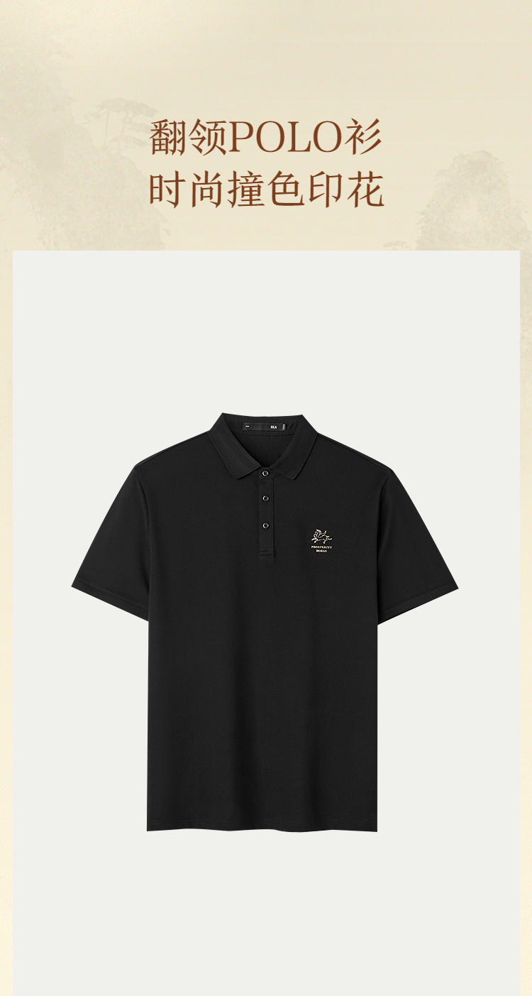 HLA海澜之家马年贺岁系列POLO衫2026新凉感翻领撞色印花短袖男HNTPW2F158A
