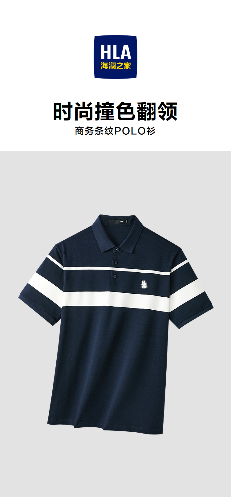 HLA海澜之家轻商务翻领短袖POLO衫26春夏新款撞色条纹弹力上衣男HNTPW2F192A