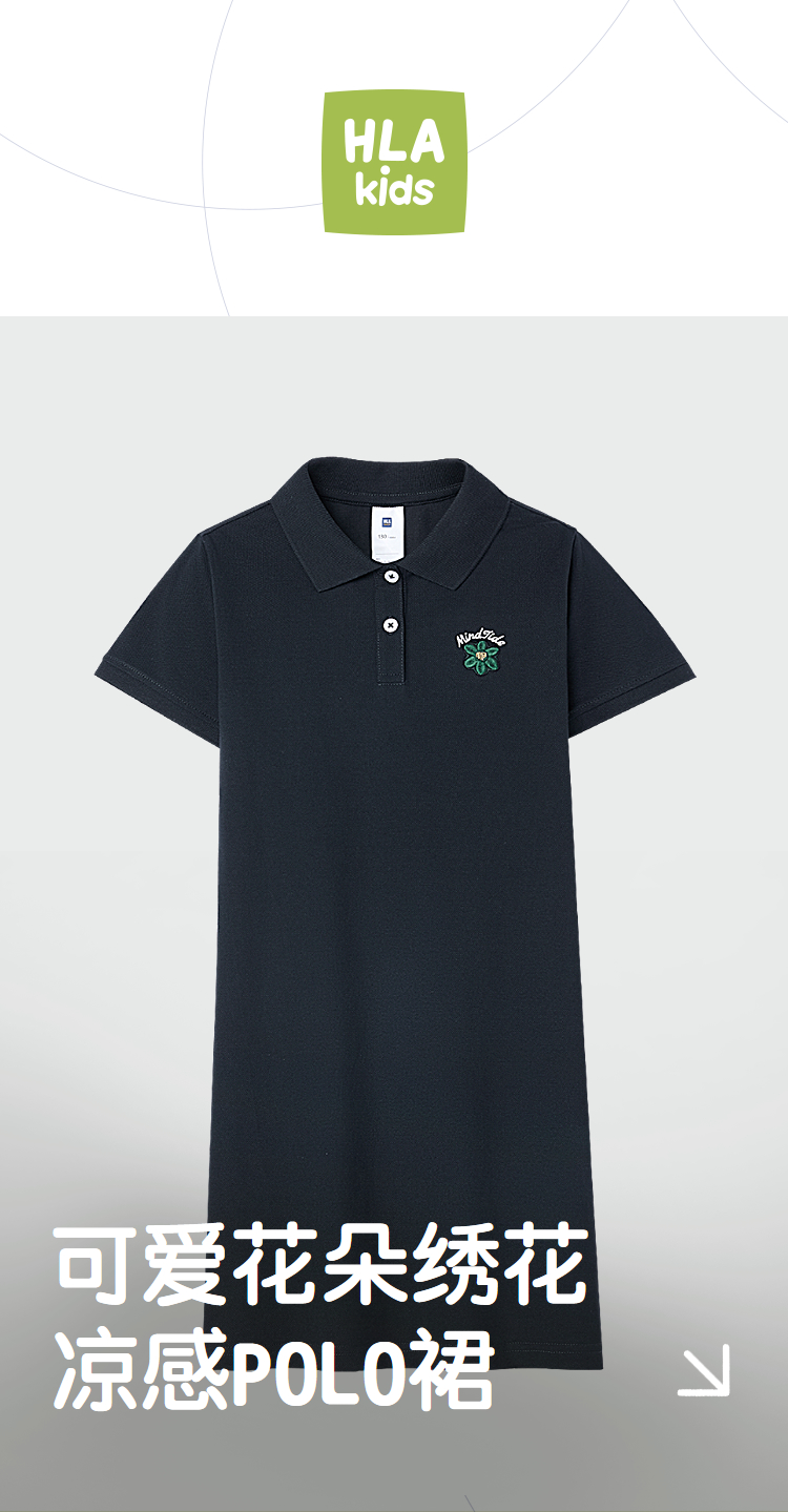 HLA海澜之家亦心即为系列短袖POLO裙26春夏新凉感刺绣裙子女童装HNTRW2F003A