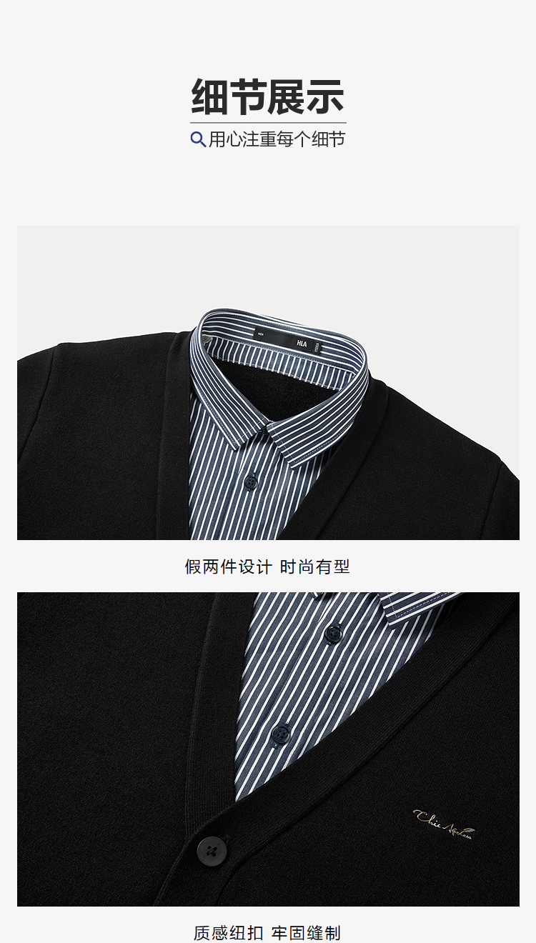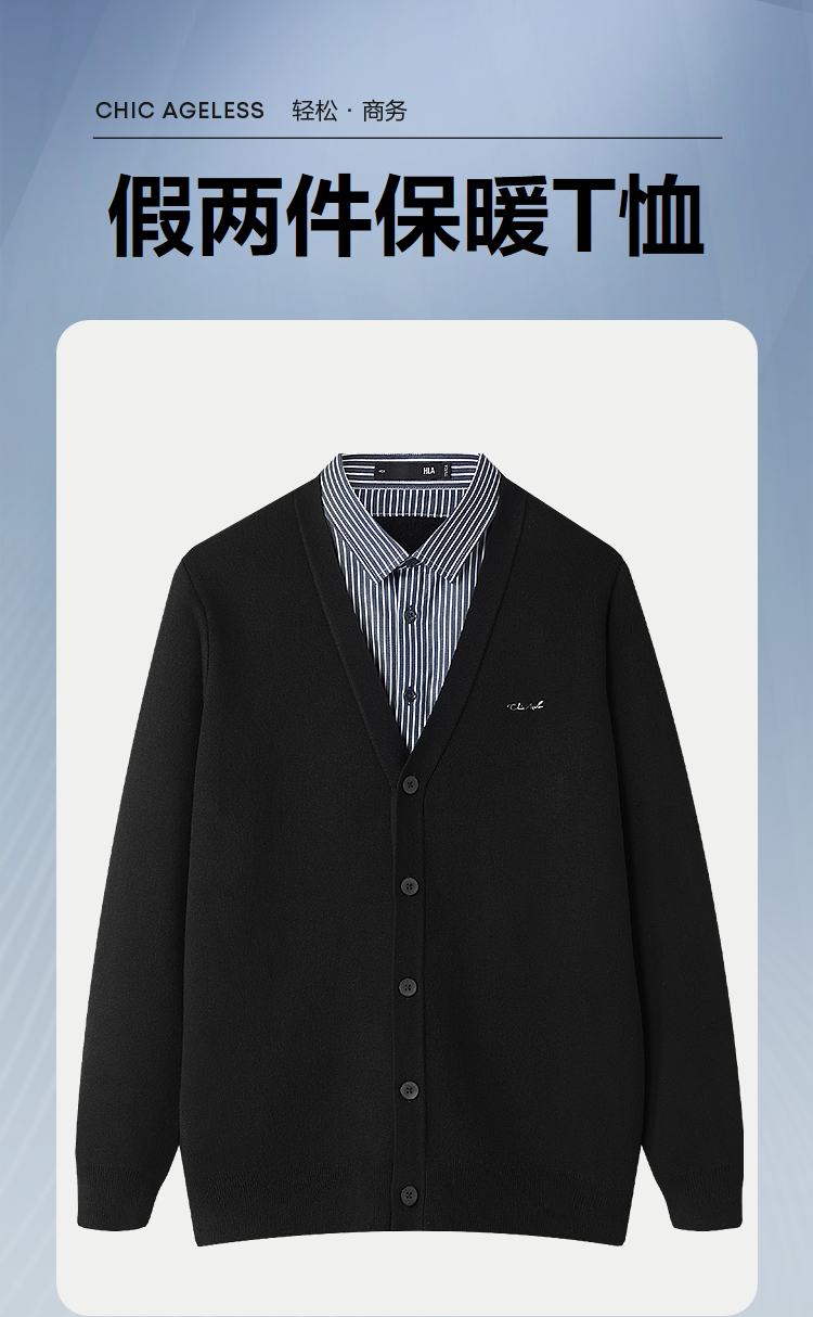 HLA海澜之家轻商务Chic Ageless保暖T恤25加绒加厚假两件上衣男HNTVW4J010A