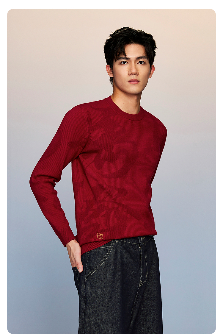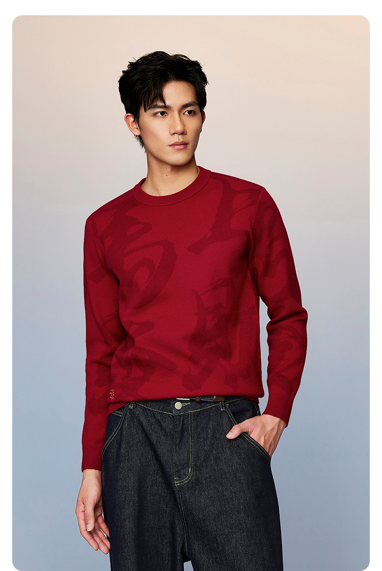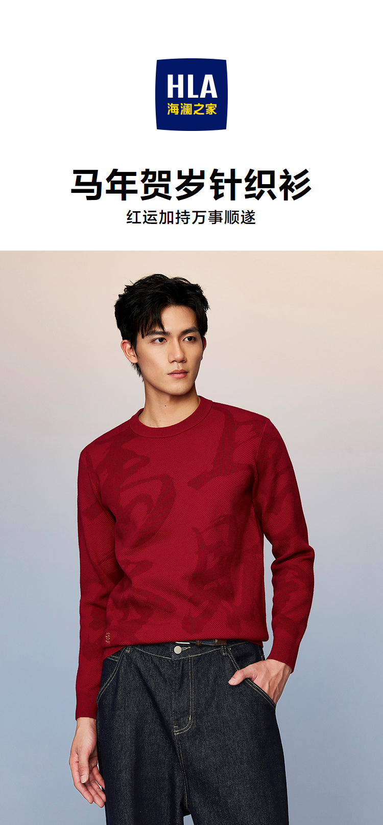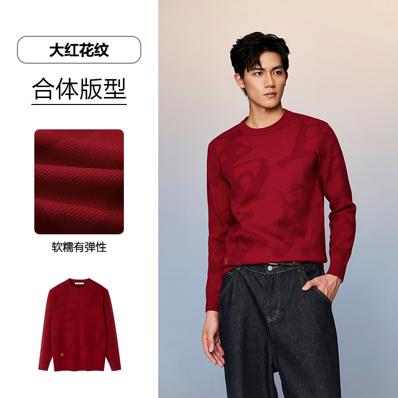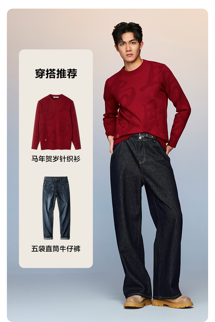 HLA海澜之家董事长推荐马年贺岁长袖针织衫26春夏新本命年012A男HNZAD1F012A
