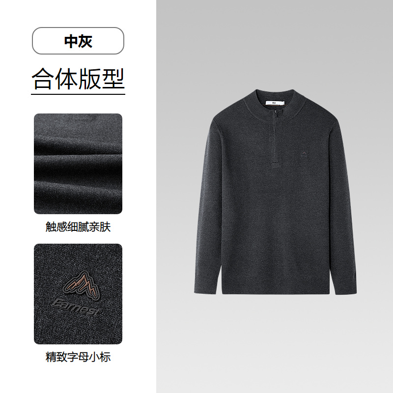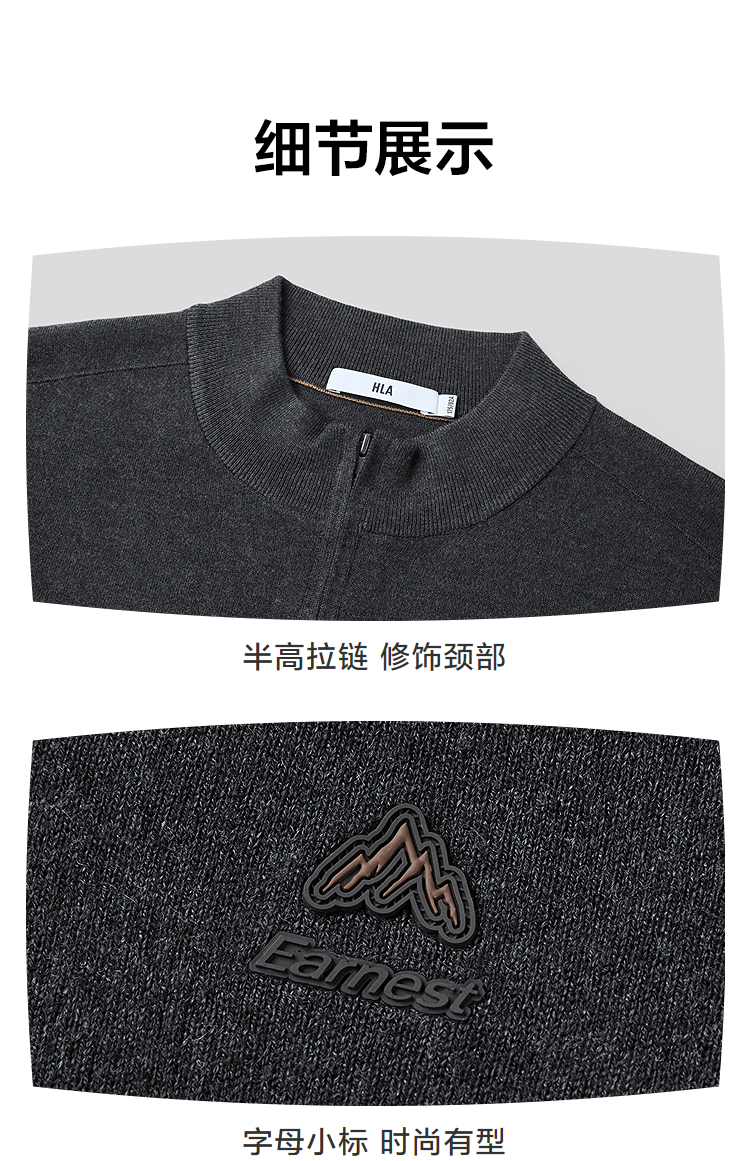 HLA海澜之家含绵羊毛针织衫25秋新半高拉链含羊绒洗水纯色毛衣男HNZAD3J095A