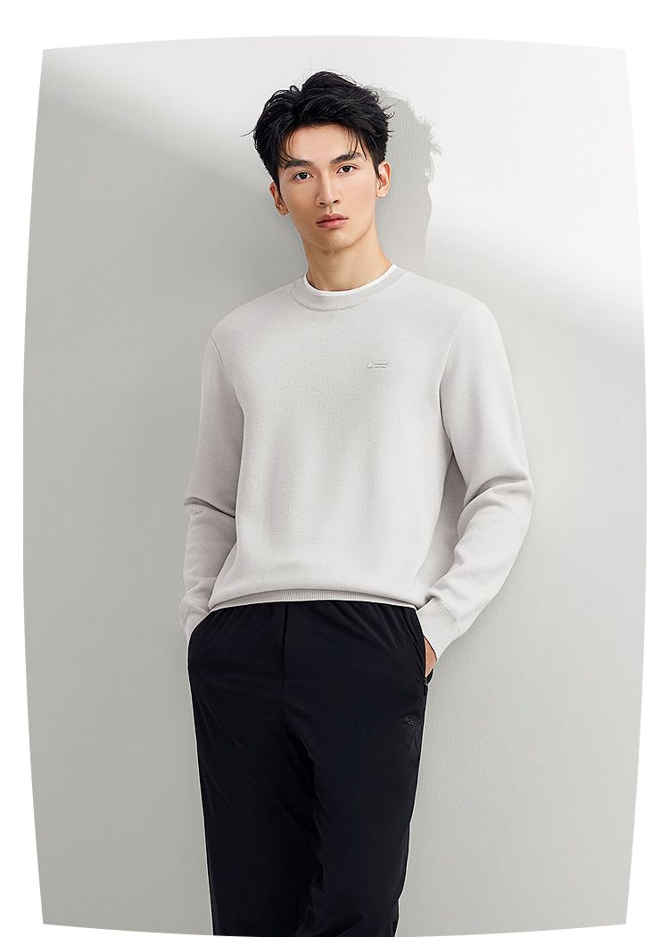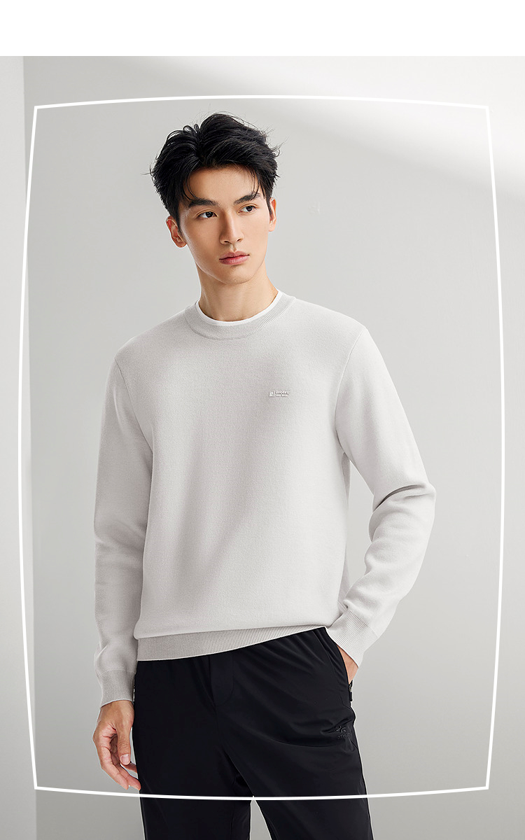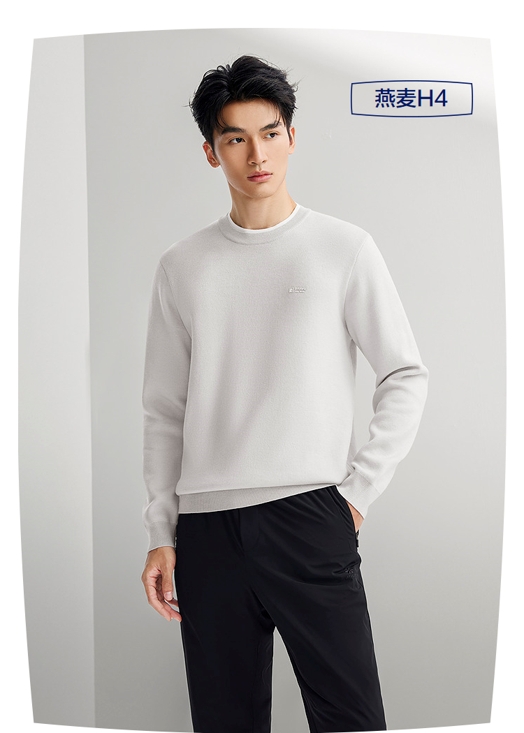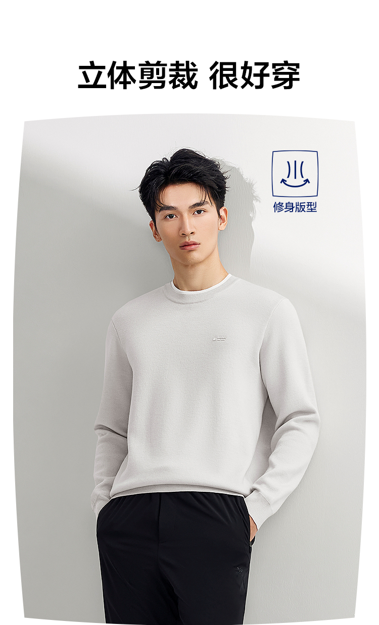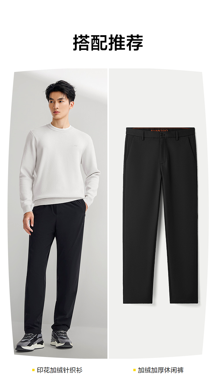 HLA海澜之家包芯纱保暖针织衫25秋冬新加绒修身圆领印花毛衣男HNZAD4J174A