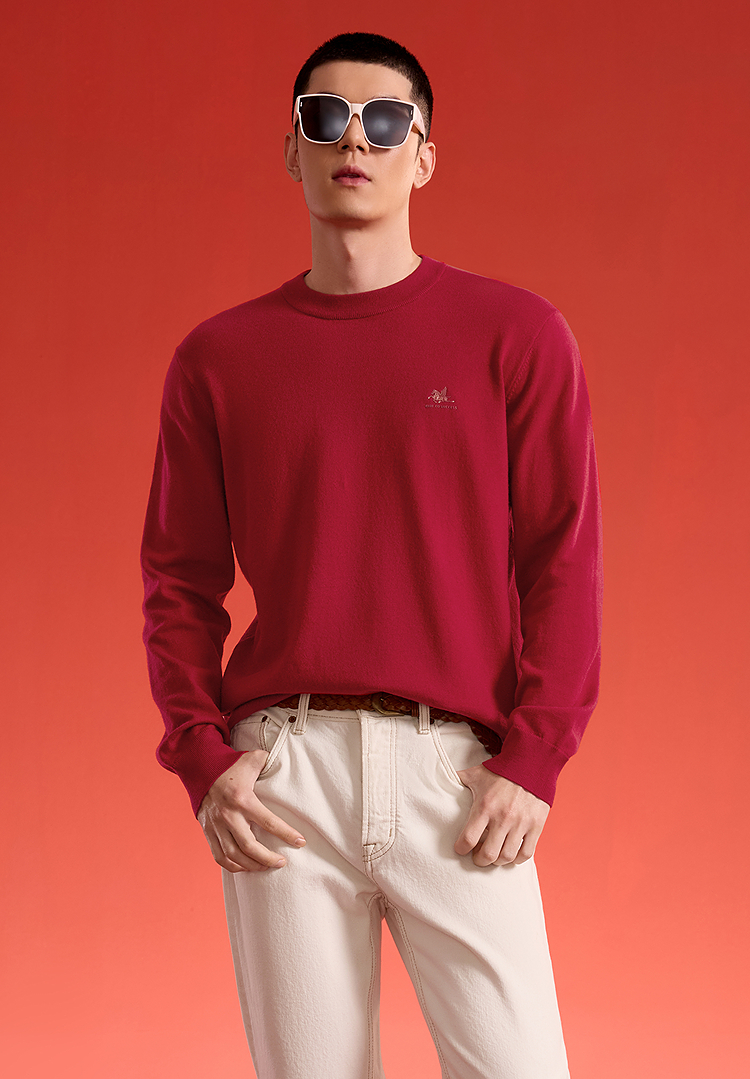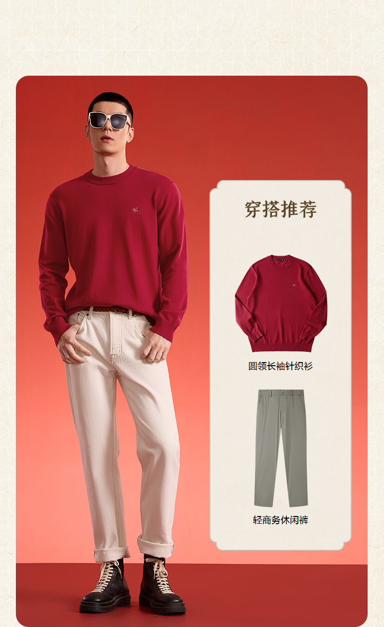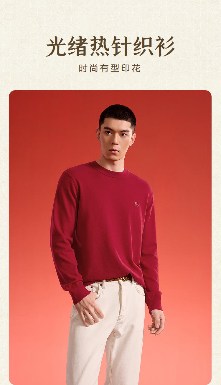 HLA海澜之家马年贺岁系列针织衫25秋新圆领高周波光绪热毛衣男HNZAW3J050A
