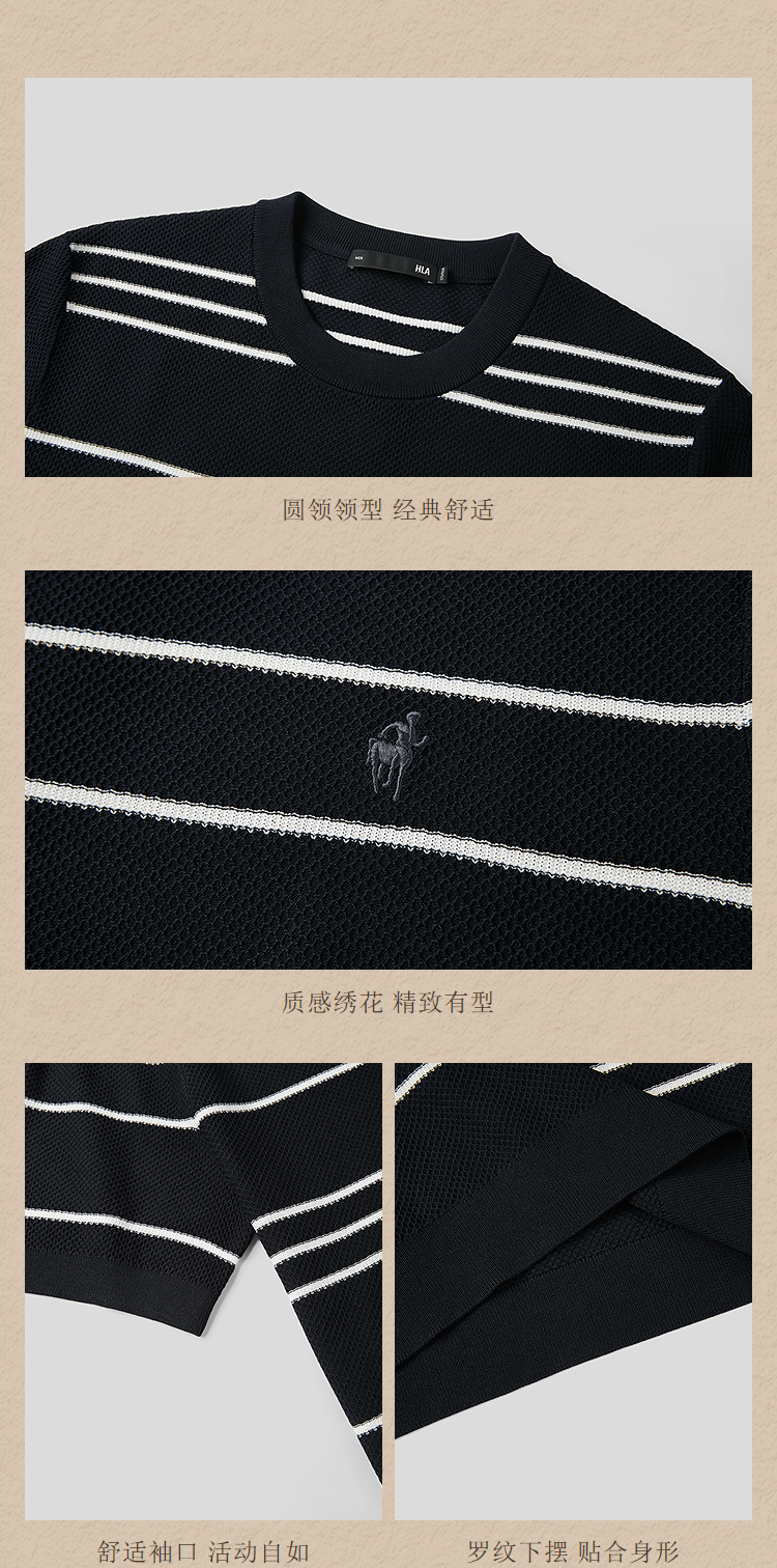 HLA海澜之家轻商务洛德利格联名短袖针织衫26春夏新条纹上衣男HNZBW2F003A