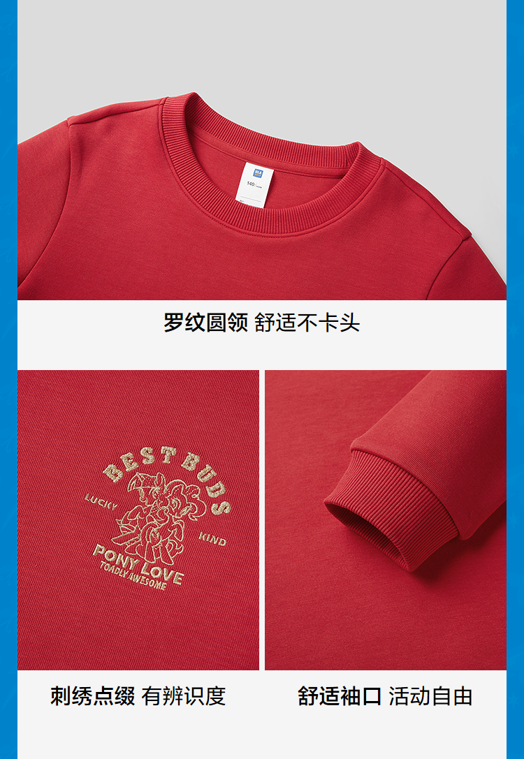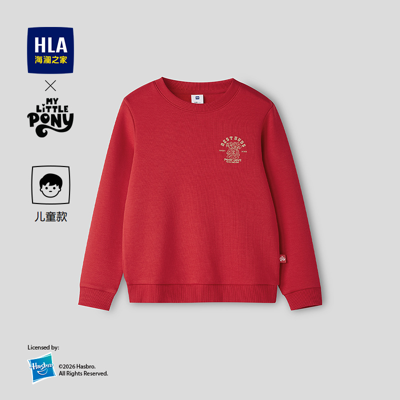 HLA海澜之家小马宝莉联名圆领刺绣卫衣26春秋新保暖上衣男女童装HNZKW1F002A