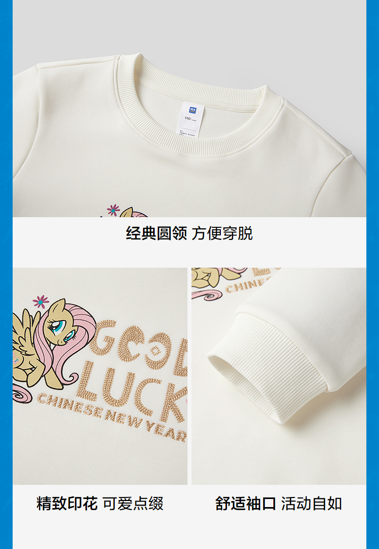 HLA海澜之家小马宝莉联名卫衣2026春秋新款圆领宽松上衣男女童HNZKW1F003A