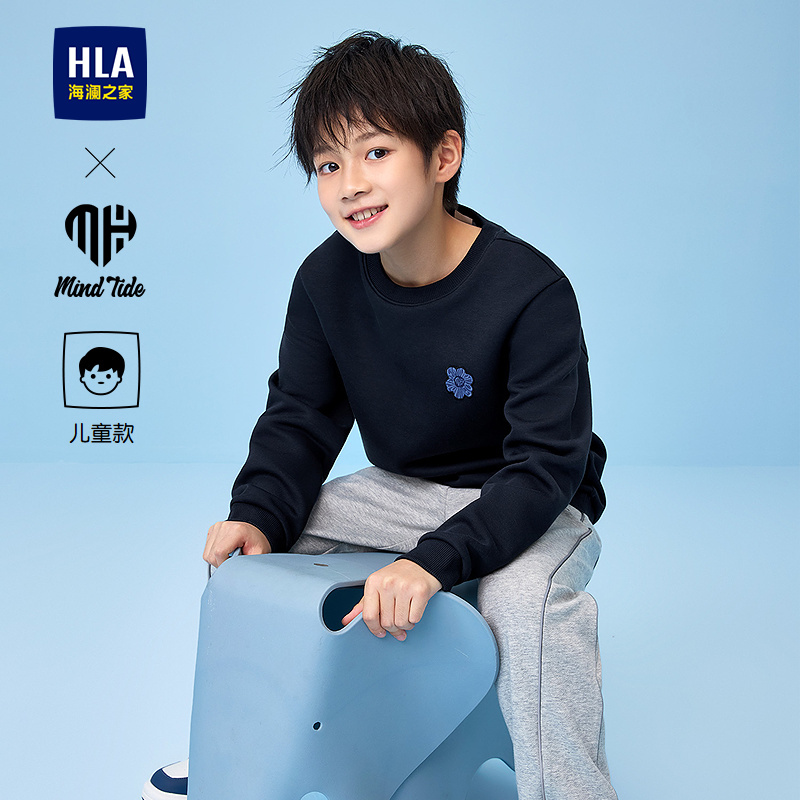 HLA海澜之家亦心即为系列卫衣2025秋新款贴布绣时尚柔软男女童装HNZKW3J021A