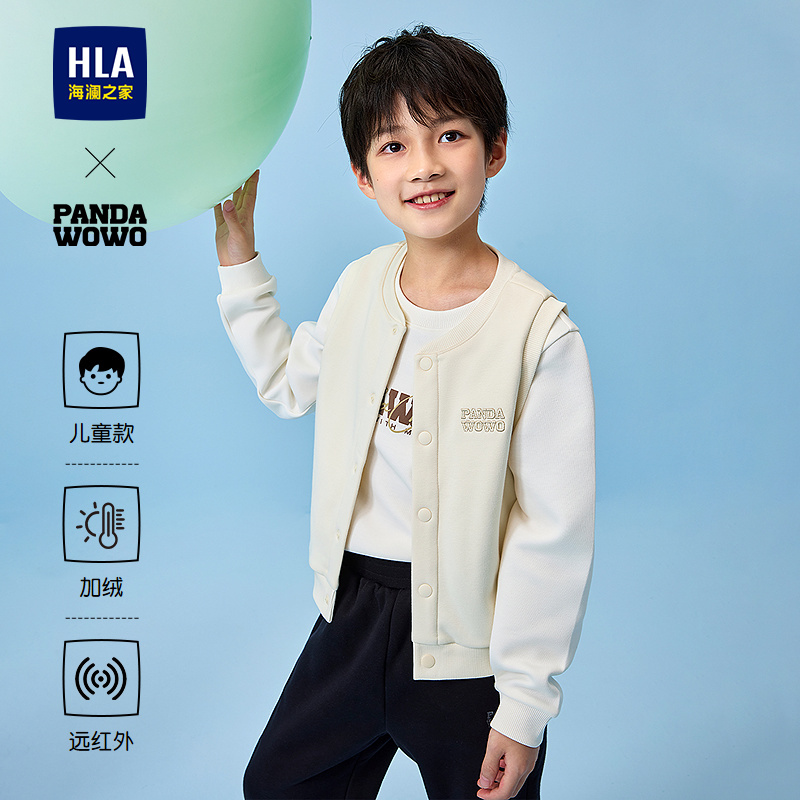 HLA海澜之家panda wowo熊猫背心25秋冬新字母刺绣保暖背心男女童HNZVW4J003A