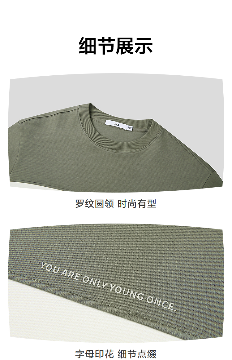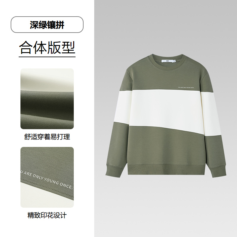 HLA海澜之家微弹卫衣2025秋季新款圆领字母印花远红外保暖上衣男HNZWD3J208A